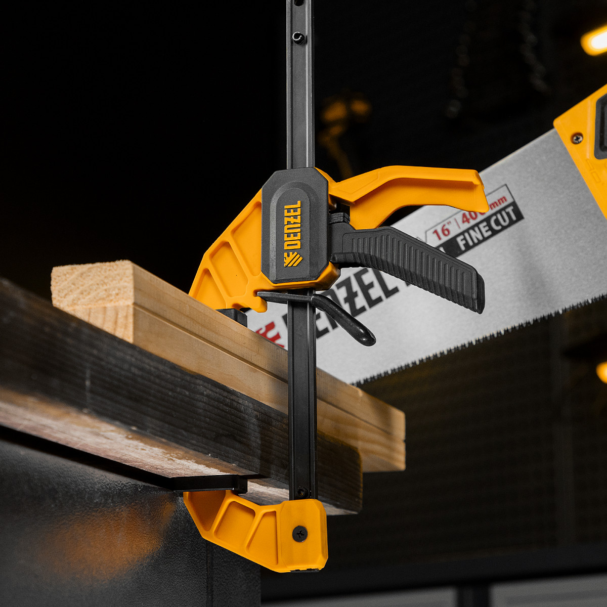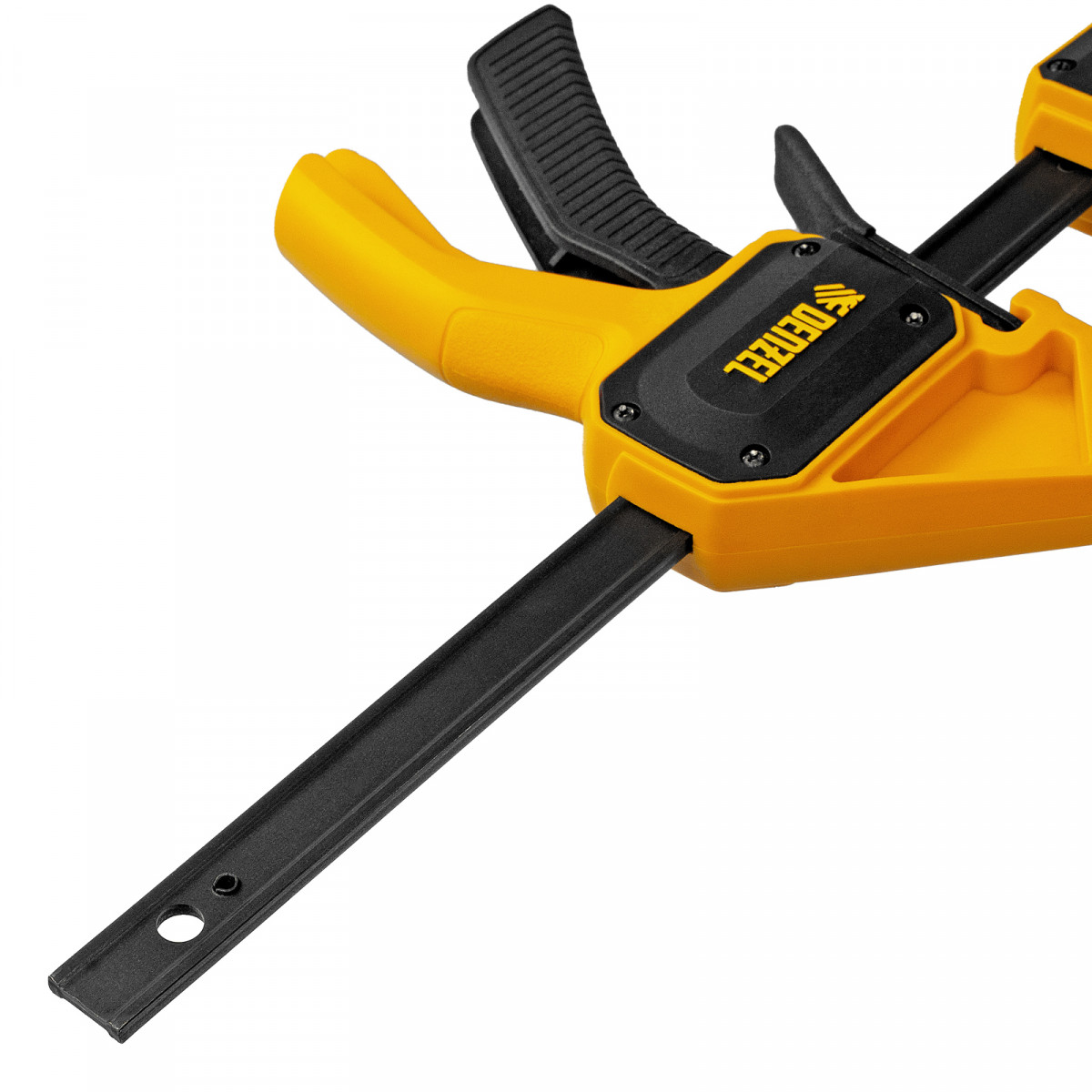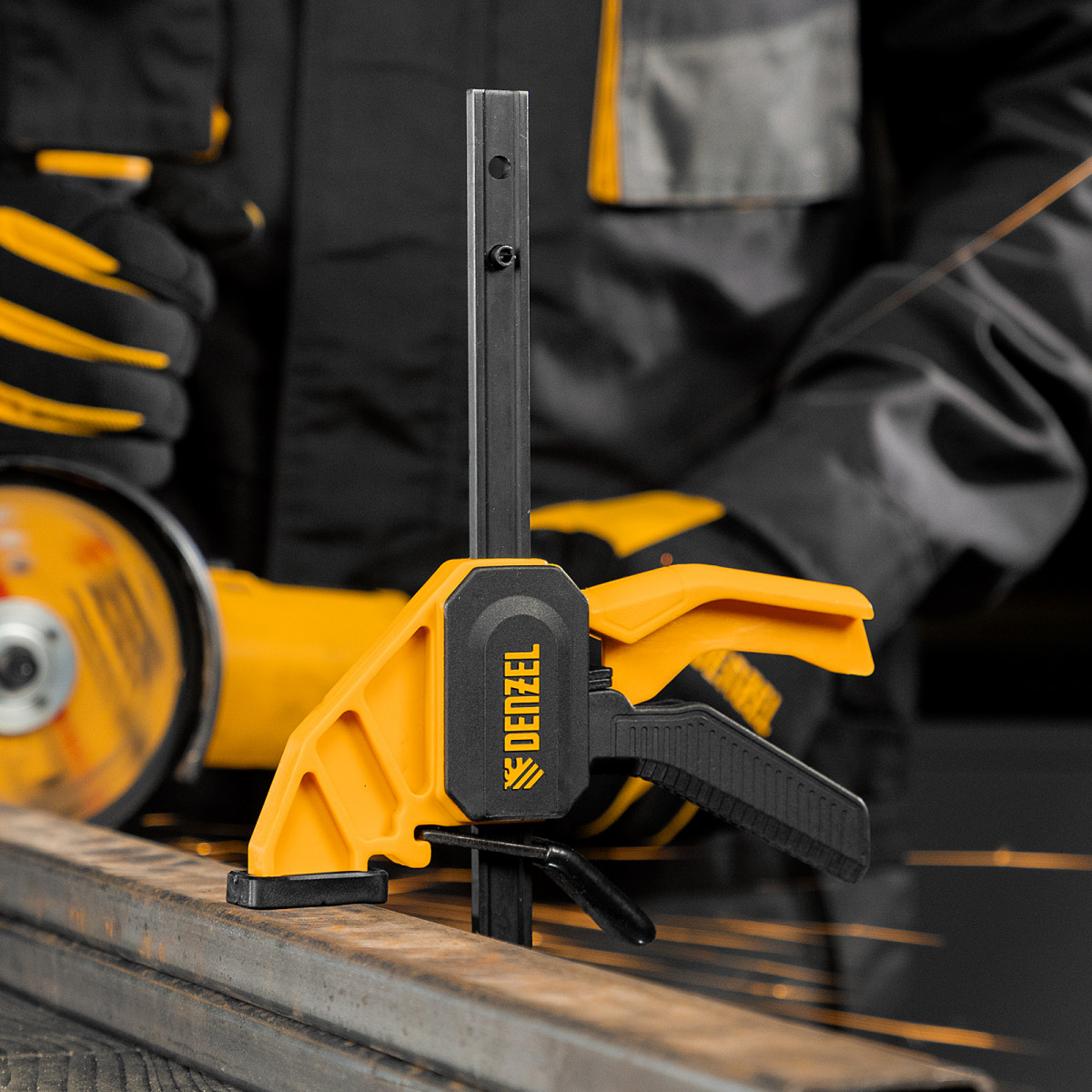 • Комфортное использование — струбцина весит всего 290 г, обрезиненная кнопка фиксации обеспечивает удобный захват.