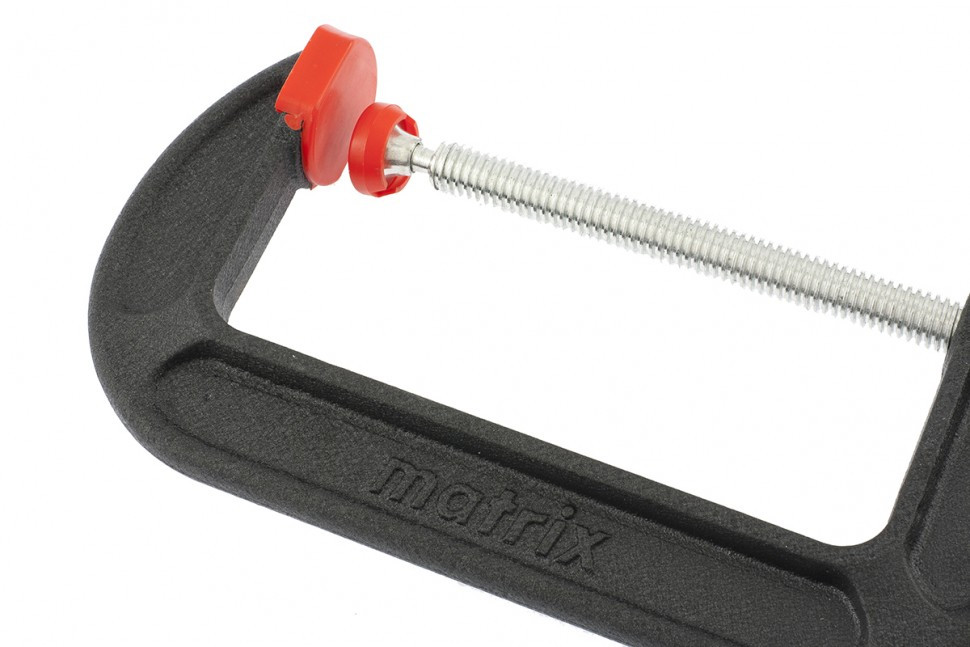 G-образная струбцина Matrix 20604 с максимальной шириной зажима 100 мм используется для фиксации заготовок или закрепления их на верстаке или станке. Позволяет склеивать детали, а также сверлить их, шлифовать, опиливать и проводить другие работы. Подходит для использования при сварке. Рама изготовлена из высокопрочного чугуна, поэтому выдерживает значительные усилия. Винт с трапециевидной резьбой обеспечивает надежную фиксацию предметов. Струбцина применяется в слесарном и столярном деле, а также в домашнем хозяйстве.