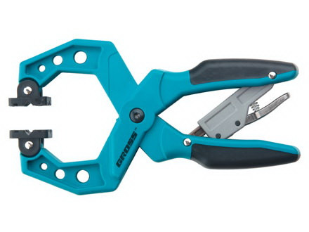 Предназначены для фиксации деталей и заготовок из различных материалов. Струбцина имеет ряд характерных особенностей. Пластичные прижимные накладки расположены на шарнирах, что позволяет размещать струбцину под разными углами по отношению к скрепляемым деталям. Зубчатый храповой механизм обеспечивает жесткую фиксацию заготовок и различных деталей (в отличие от пружинных струбцин прищепочного типа) и мгновенное раскрытие струбцины при нажатии на курок. Увеличенный радиус захвата между рабочими губками. Двухкомпонентные рукоятки.