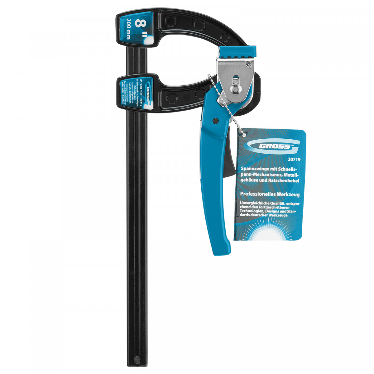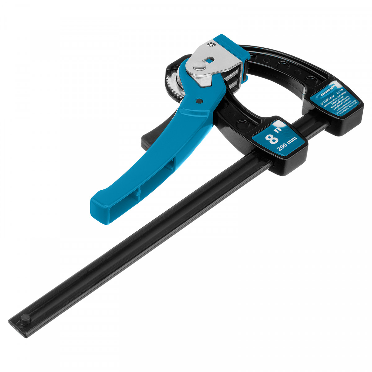 Струбцина реечная быстрозажимная 8, металлический корпус, рычажный храповой механизм, 200 мм Gross