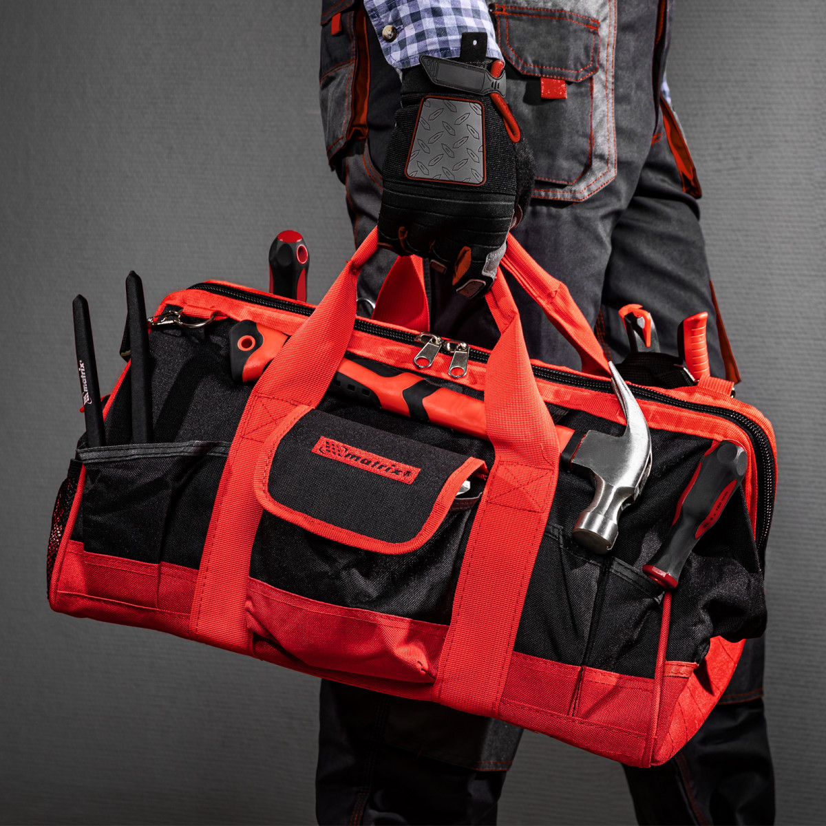 Сумка Matrix 90256 с 32 карманами, 460 х 280 х 305 мм, предназначена для транспортировки и хранения слесарных или столярных инструментов. Может использоваться для перевозки автопринадлежностей. В ней 32 кармана и вместительное основное отделение, в которых можно разместить инструменты разного размера. Сумка комплектуется наплечным ремнем с расширяющей накладкой для удобства переноски. Пригодится монтажникам, слесарям, строителям, будет полезна дома и в поездке.