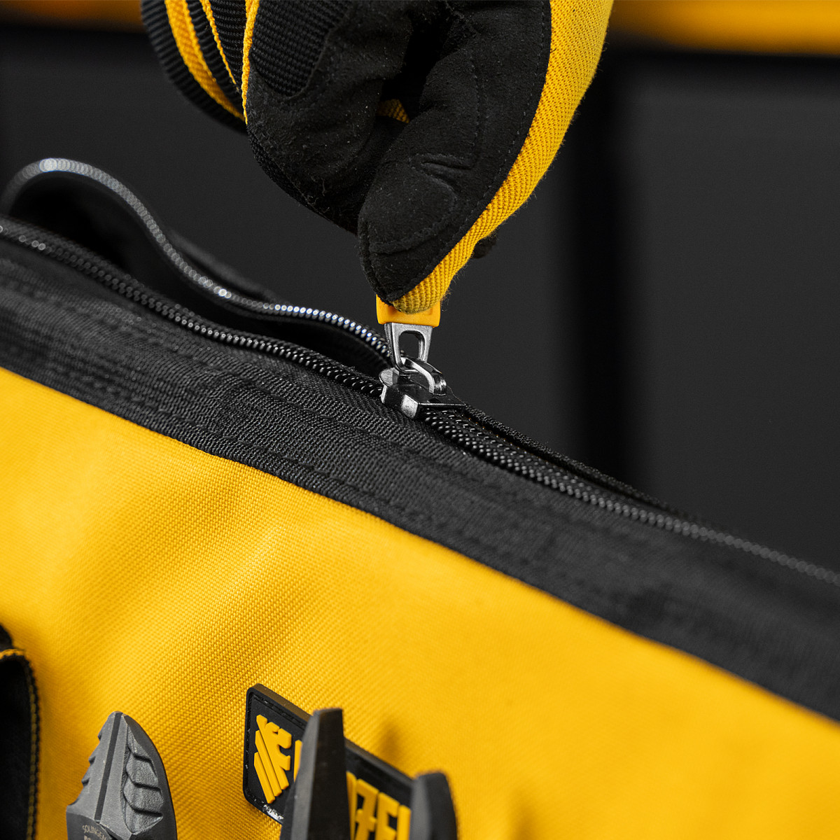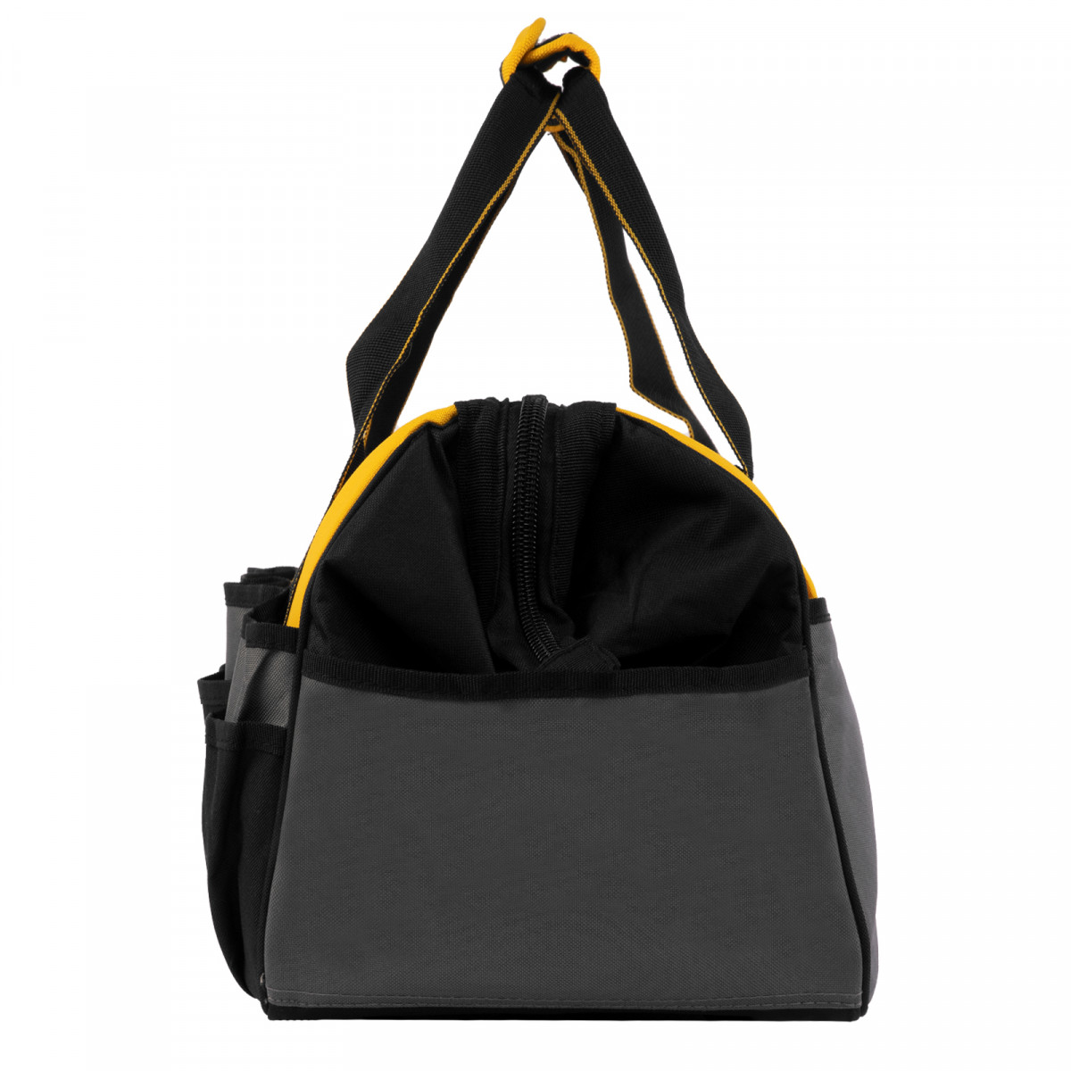Сумка Denzel 90293 габаритами 500 х 245 х 300 мм с 20 карманами (в том числе съемным органайзером на 10 карманов) и наплечным ремнем, вмещает большое количество инструментов и используется для их хранения и транспортировки. Пригодится монтажнику, сантехнику, мастеру на выезде и автовладельцу.
