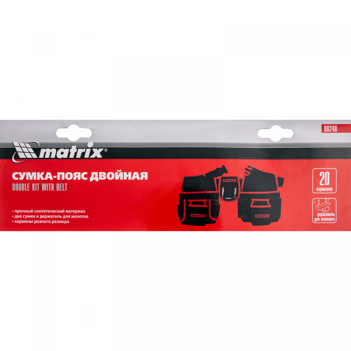 Двойная сумка-пояс Matrix 90240 с 20 карманами и держателем для молотка позволяет всегда иметь при себе необходимые инструменты, при этом оставляя руки свободными. Особенно удобна при проведении работ на стремянках или подмостях. На пояс надеты 2 сумки, между которыми имеется отдельный держатель для молотка, поэтому инструменты можно распределить равномерно. Сумка-пояс пригодится строителям и монтажникам, а также будет полезна в быту.