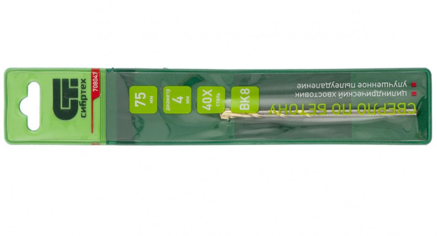 Сверло по бетону 4 х 75 мм цилиндрический хвостовик СИБРТЕХ