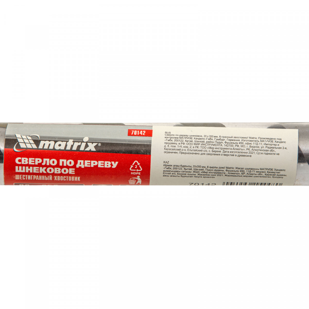 Сверло по дереву шнековое, 20 х 350 мм, шестигранный хвостовик Matrix