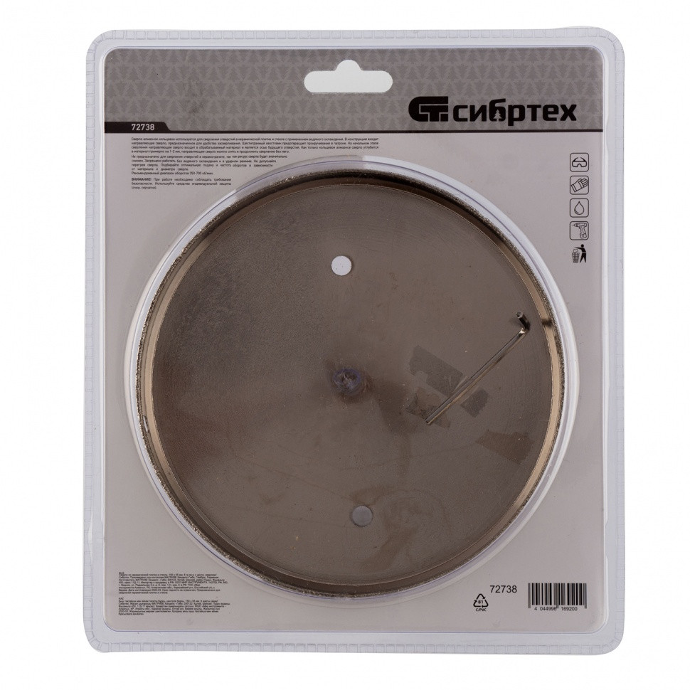 Сверло Сибртех 72738 размером 150 х 55 м, с шестигранным хвостовиком и центрирующим сверлом, позволяет получать отверстия в керамической плитке и стекле. Его устанавливают на дрель или шуруповерт, рекомендуемый диапазон рабочих оборотов 350-700 об/мин. Оснастка используется при выполнении бытовых ремонтных и отделочных работ.