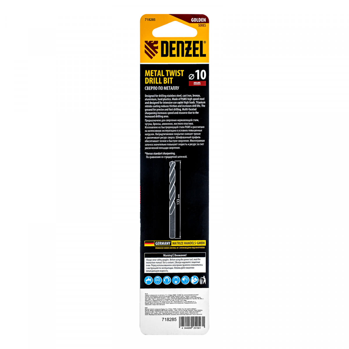 Сверло спиральное по металлу 10 x 133мм, Р6М5, Golden Tip, многогранная заточка Denzel