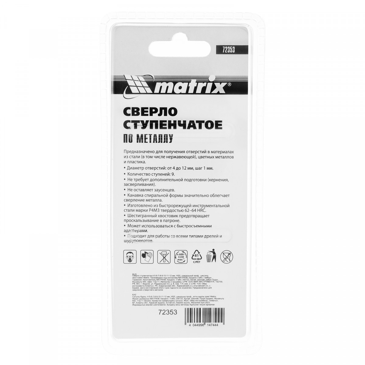 Ступенчатое сверло Matrix 72353 из стали HSS, со спиральным профилем и шестигранным хвостовиком, позволяет получать отверстия диаметром 4-5-6-7-8-9-10-11-12 мм в материалах толщиной до 5 мм: стали, цветных металлах, нержавейке и пластике. Благодаря плавному ступенчатому переходу и возможности сразу снять фаску отверстие получается аккуратным и имеет ровные края.