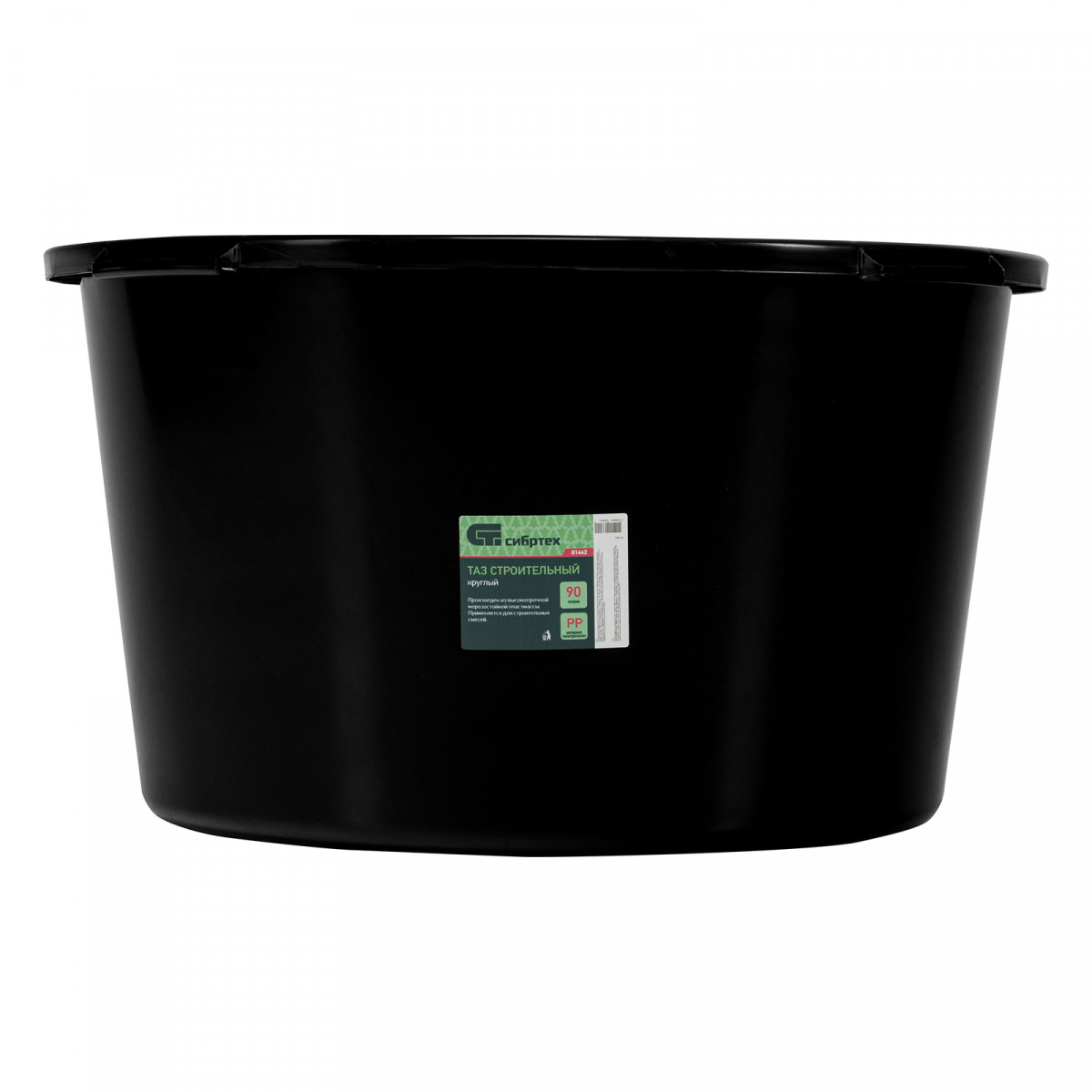Круглый строительный таз Сибртех 81442 объемом 90 л используется для приготовления штукатурных, шпаклевочных, красящих, клеевых растворов при проведении ремонтных и отделочных работ. Пригодится таз и в быту — в нем удобно хранить и перемещать сыпучие материалы.