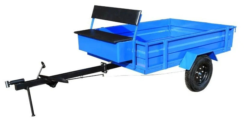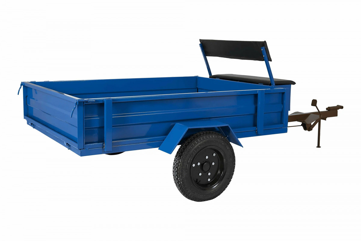 Тележка прицепная ТМ-500/2 (2х местная) к мотоблокам мощностью не менее 3..5 кВт, предназначена для перевозки различных сельскохозяйственных, строительных материалов и других грузов в приусадебных хозяйствах, в садах и огородах коллективного и индивидуального пользования, на животноводческих фермах, в теплицах и коммунальном хозяйстве. Тележка используется в агрегате с мотоблоками: КАСКАД, МБ-1Д -Ока, МБ-1Д2-Ока, МБ-2К-Нева, АГРО, УРАЛ, УРАЛ-3. и др. Технические характеристики ТМ-500/2 Грузоподъемность, кг, не более 500 Рабочая скорость движения, км/ч, не более 10 Габаритные размеры, не более (длина, ширина, высота) 2950*1320*900 Размеры кузова внутренние, не более (длина, ширина, высота) 1700*1180*275 Размер кузова при горизонтальном положении бортов, не менее (длина, ширина, высота) - 2060*1860*270 Дорожный просвет, мм, не менее 520 Колея колеса, мм 1100 Угол наклона кузова, градус, не менее - 40 Шины 5.00-10 Давление в шинах, мПа (кгс/кв.св) 0.2(2) Масса, кг 130 Разгрузка кузова, направление- назад Характ