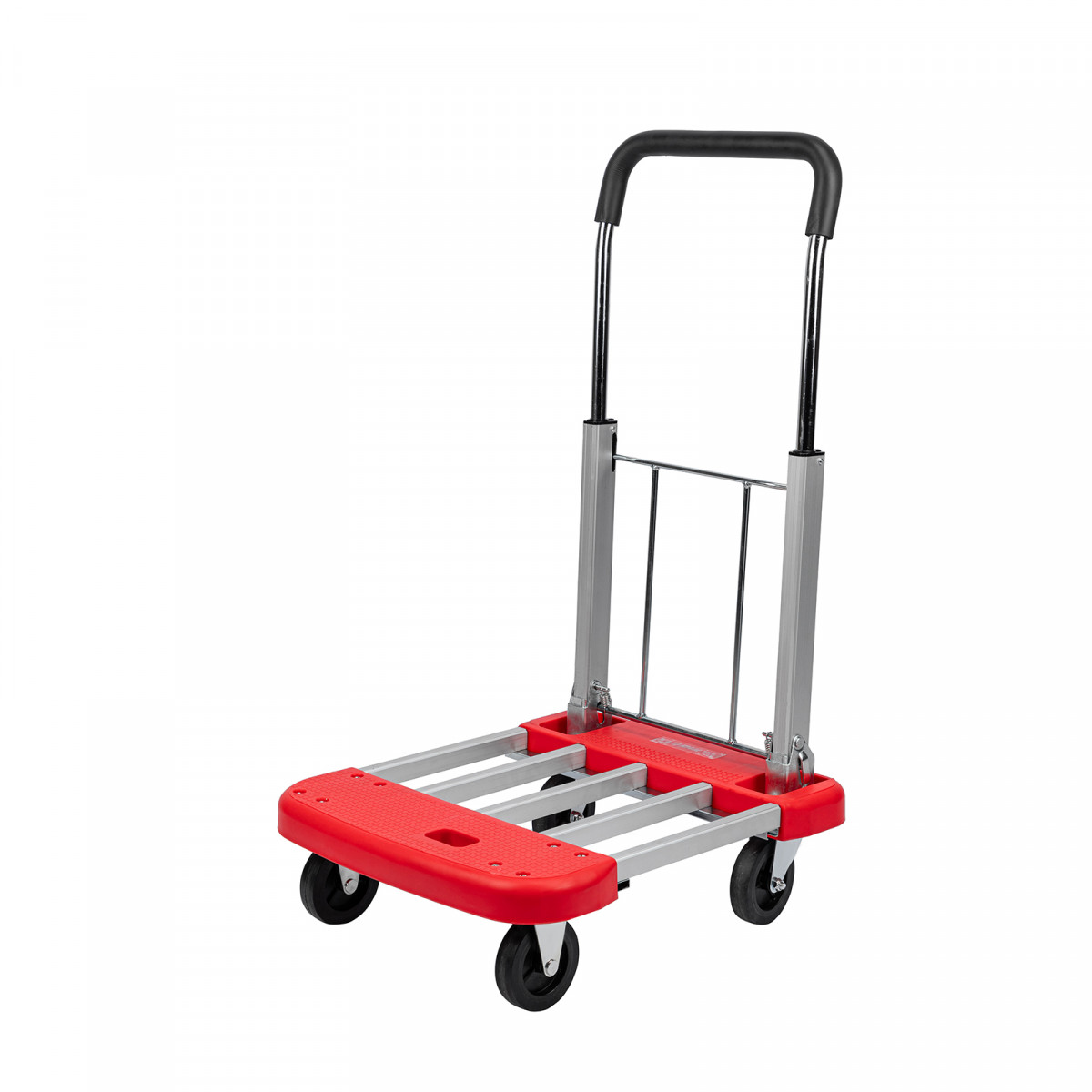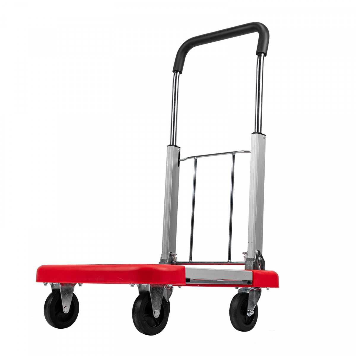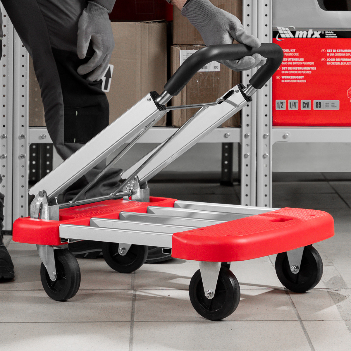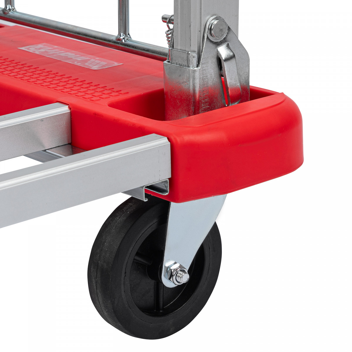 • Удобное хранение и транспортировка — благодаря телескопической платформе тележка не занимает много места.