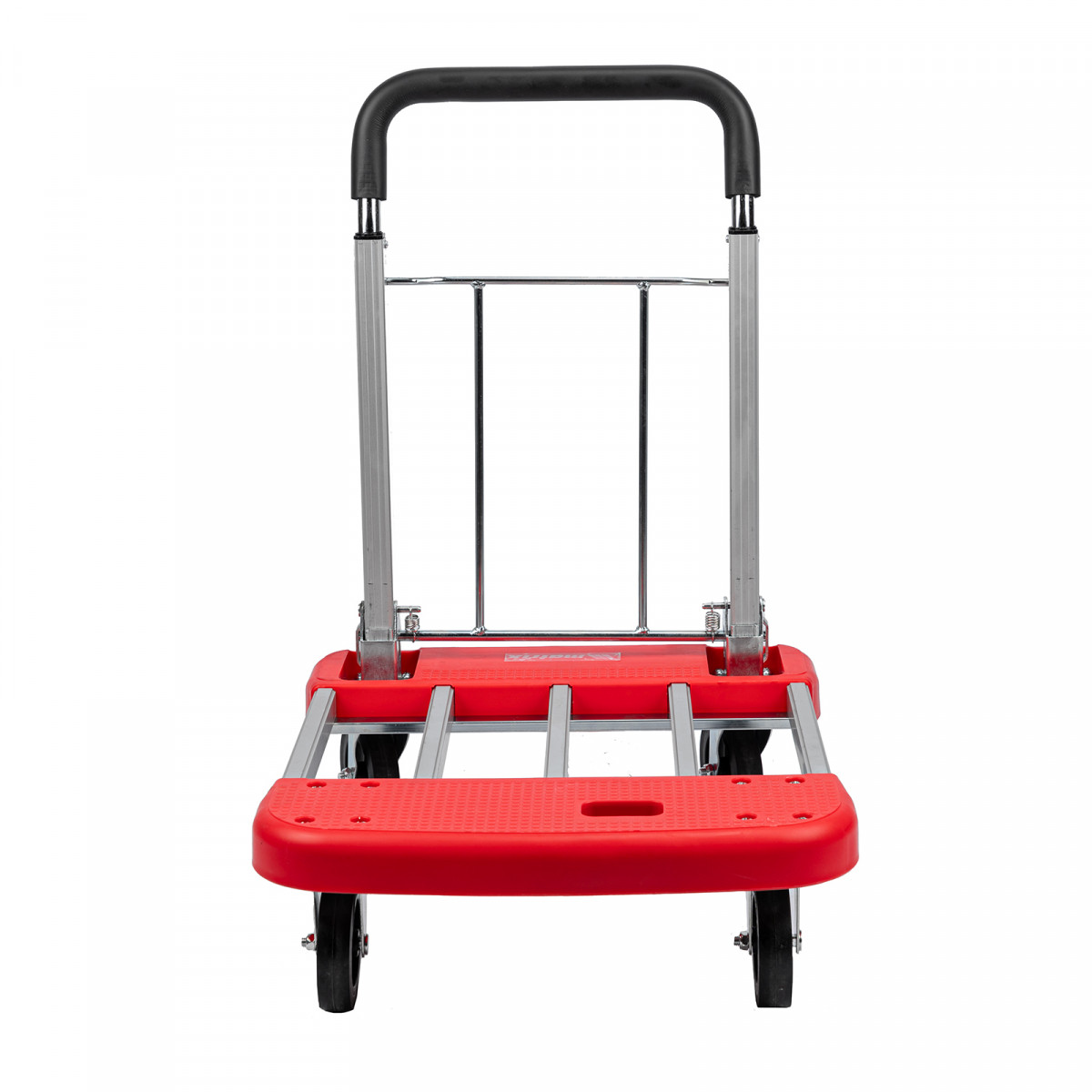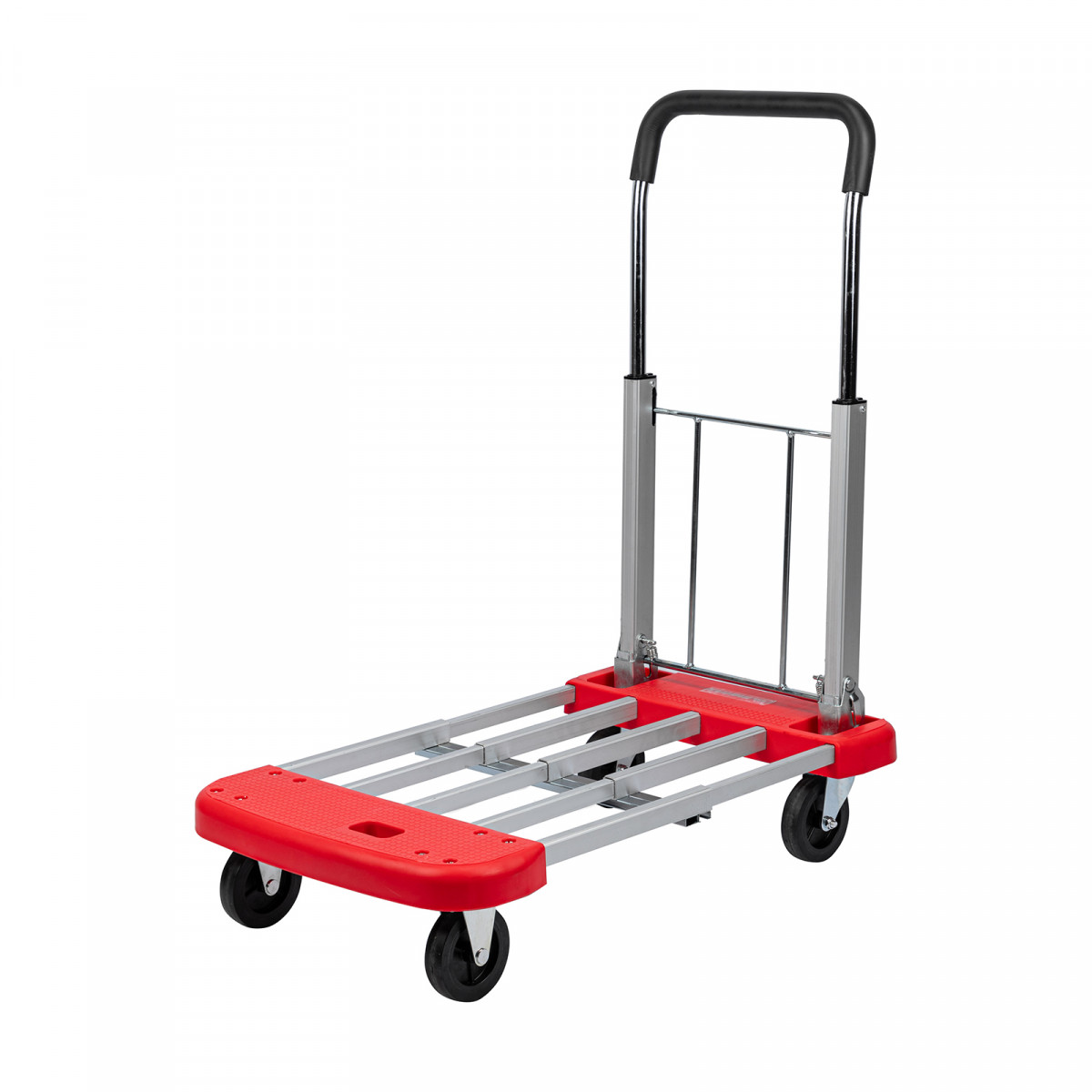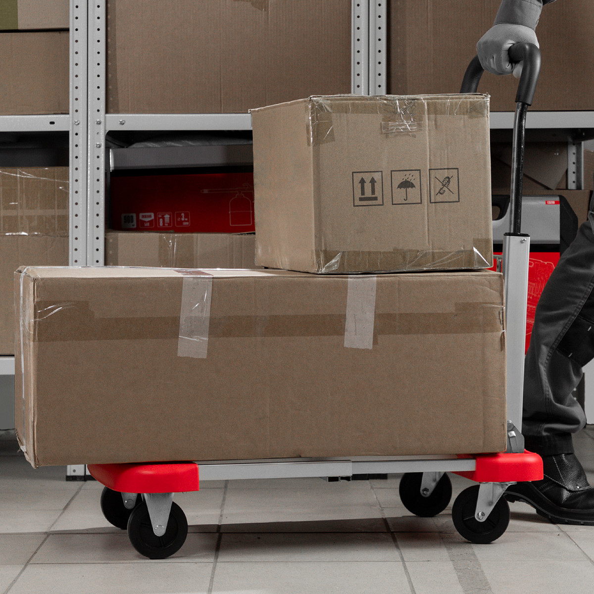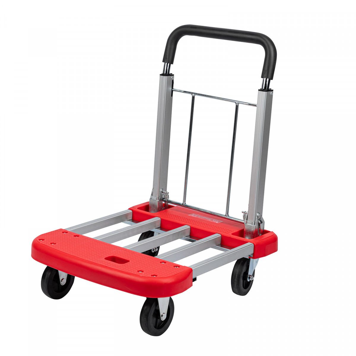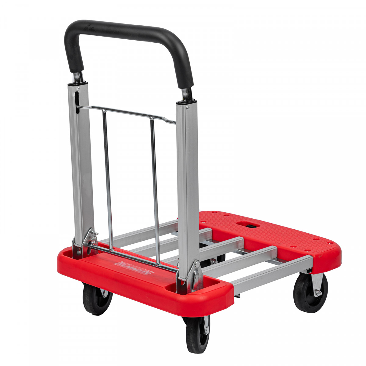 • Удобное хранение и транспортировка — благодаря телескопической платформе тележка не занимает много места.