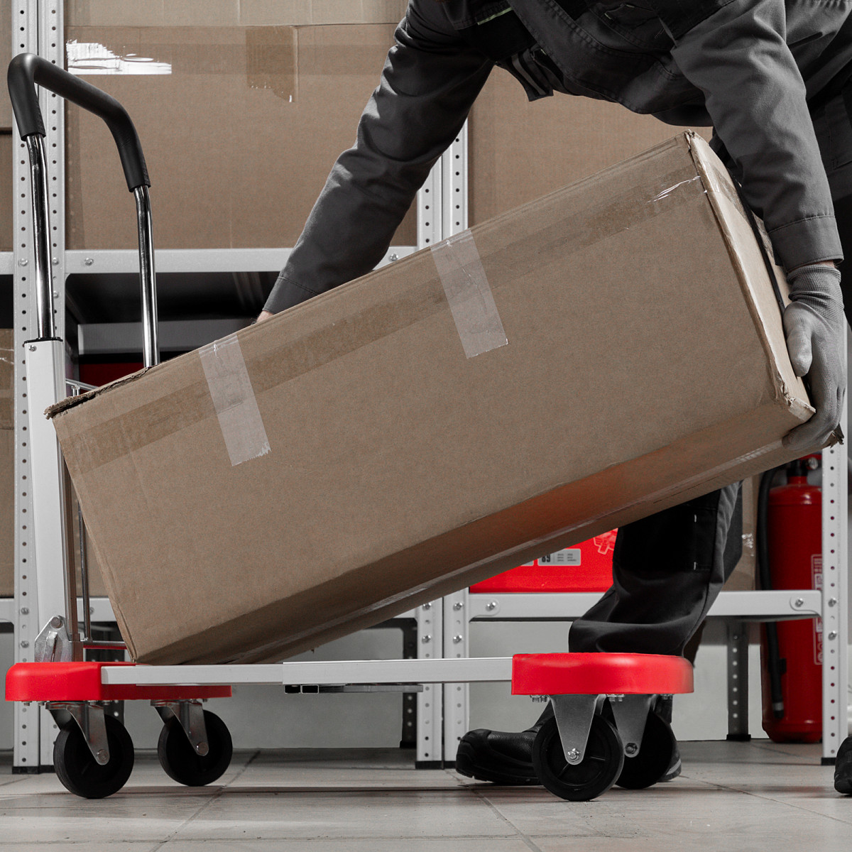 • Легкое перемещение грузов — поворотные колеса обеспечивают повышенную маневренность.