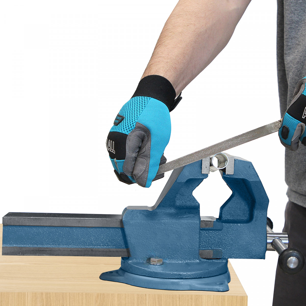• Надежная фиксация изделий — тиски оснащены рельефными губками.