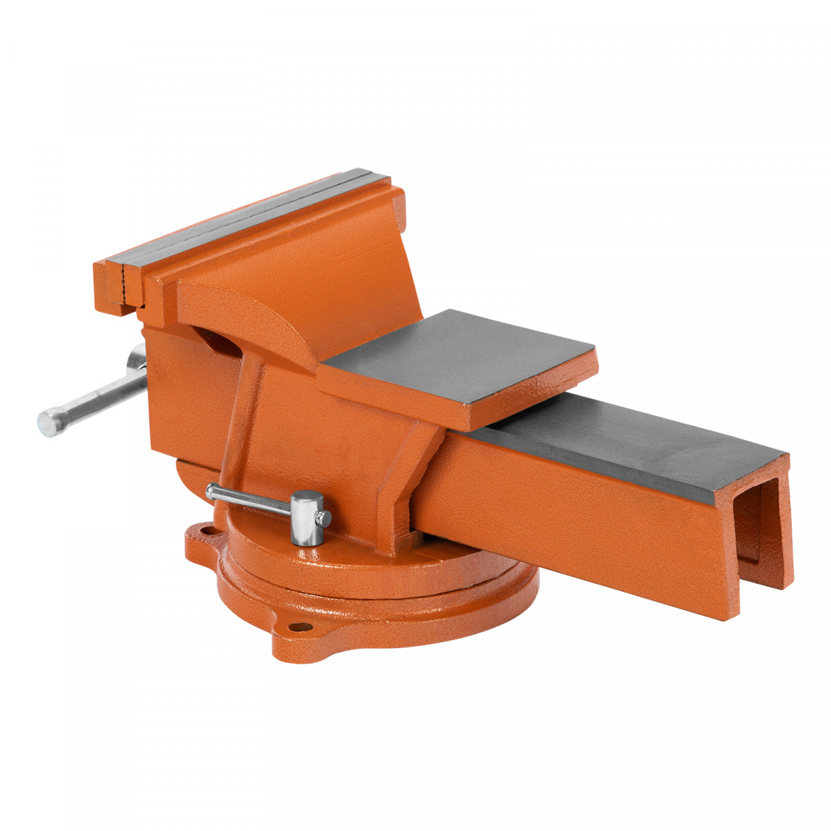 Поворотные тиски Sparta с наковальней обеспечивают высокую прочность благодаря корпусу из чугуна и губкам из стали.