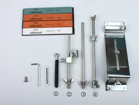 Комплектация: точильный станок, 4 камня разной зернистости, чехол для камней, полотенце, маркер, инструкция на русском языке.