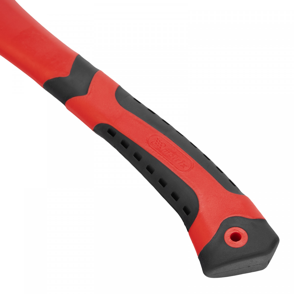 • Комфортная работа — фибергласовое топорище с резиновыми накладками гасит колебания от ударов и не выскальзывает из ладоней, благодаря перфорации на рукоятке руки не потеют во время работы.