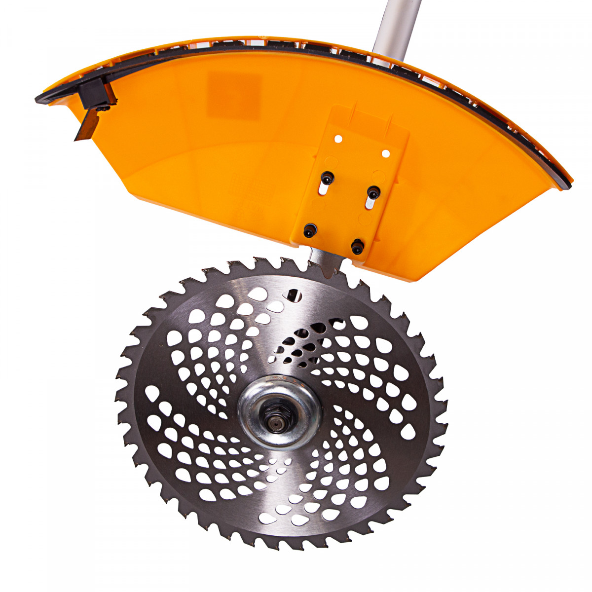 • Безопасность — защитный пластиковый кожух предохраняет пользователя от вылета травы, камней и щепок.