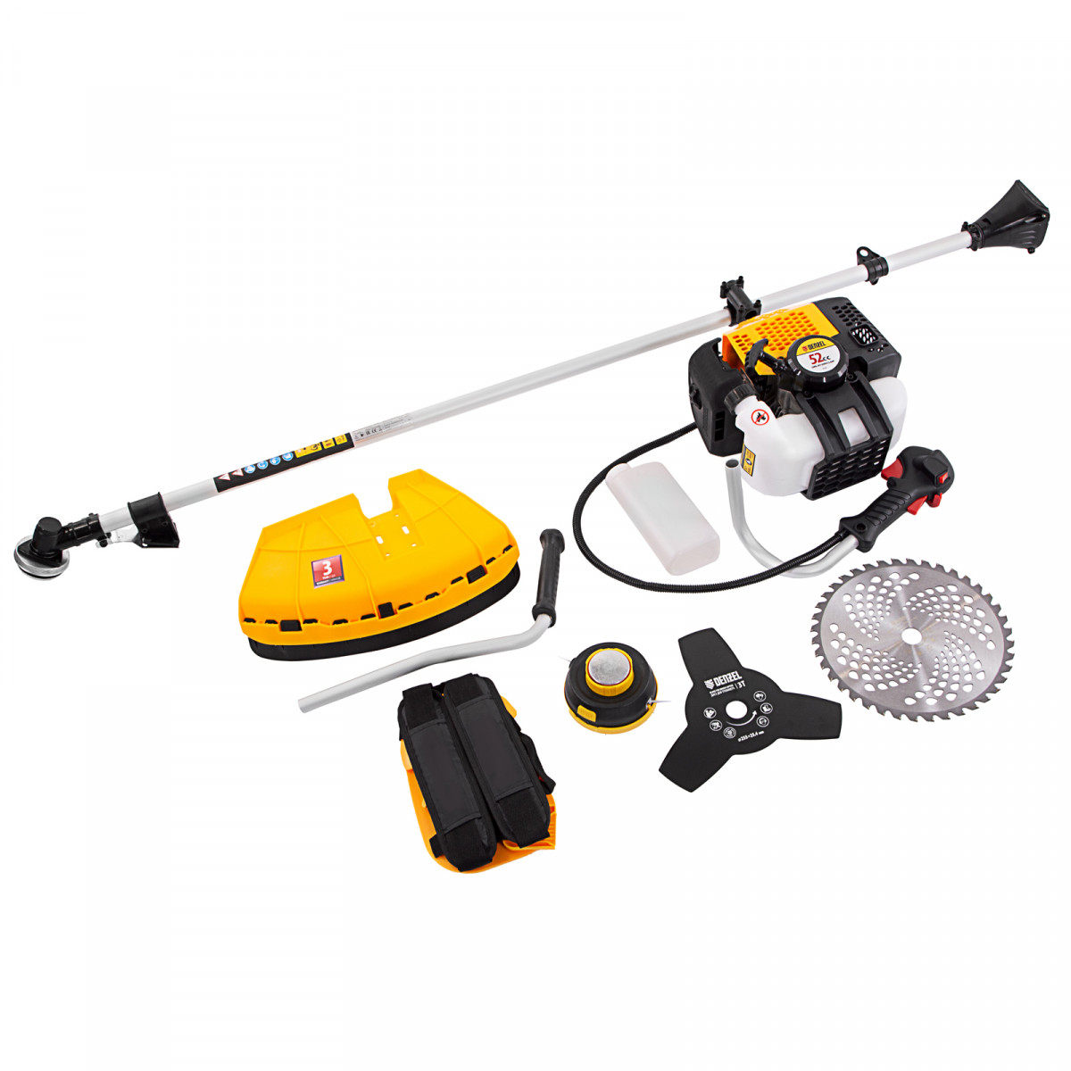 Триммер бензиновый - 1 штКатушка - 1 штНож трехлопастной 3Т - 1 штПильный диск 40Т - 1 штДвухплечевая подвесная система с защитой бедра - 1 штДозатор для приготовления смеси - 1 штНабор крепежа - 1 штНабор инструментов - 1 штРуководство по эксплуатации с гарантийным талоном - 1 штДозатор для приготовления топливной смеси - 1 шт
