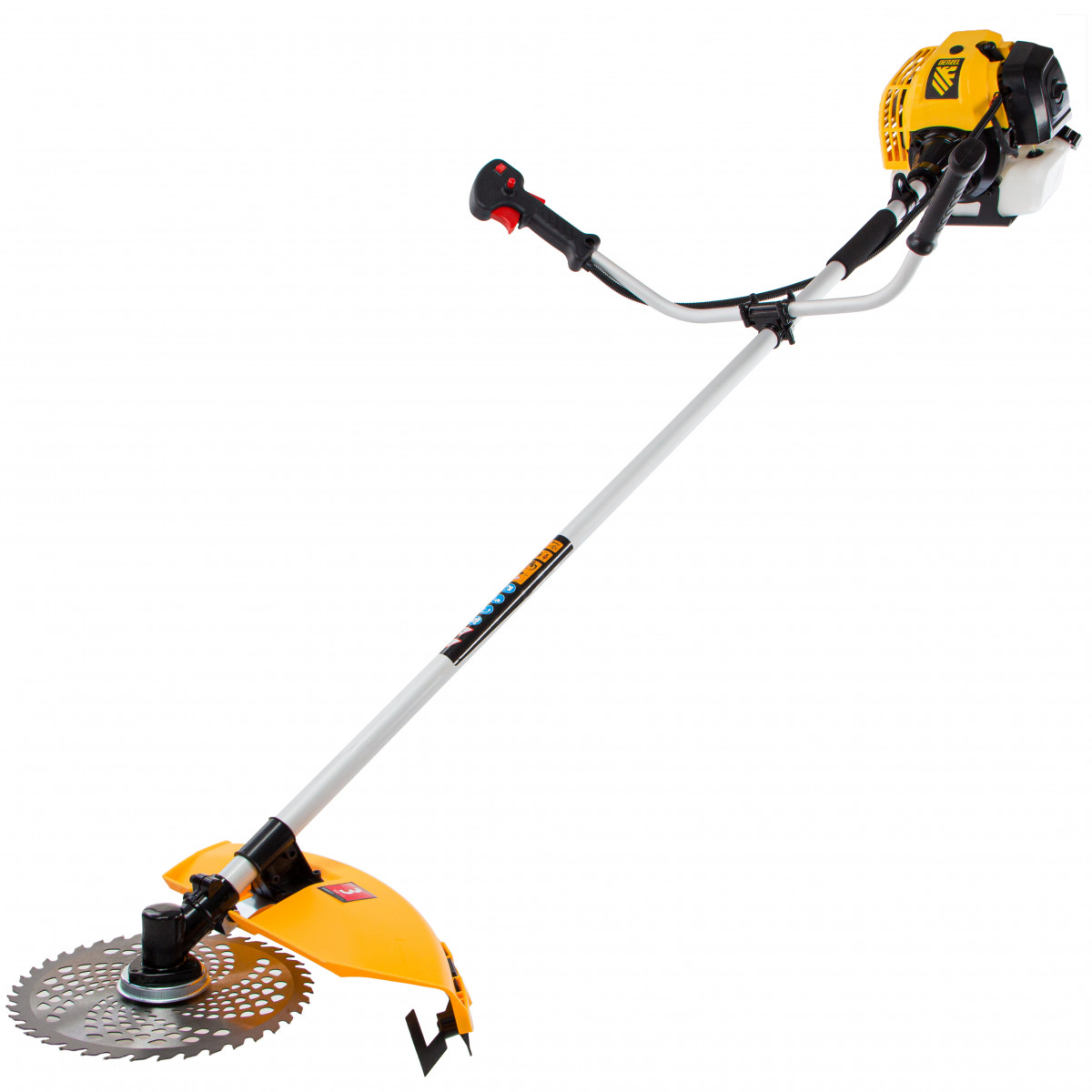 Бензиновый триммер Denzel DT-43 96224 оснащен экономичным, надежным и простым в эксплуатации двигателем мощностью 2,5 л.с. и объемом 43 см3, имеет неразъемную штангу и поставляется комплектом из 2 частей. Оптимален для подравнивания газона и скашивания травы с жесткими древовидными стеблями (полыни, крапивы, лебеды, борщевика), а также срезания кустарника и молодых побегов деревьев с диаметром стволов до 10 мм. Эффективно скашивает траву в труднодоступных местах: вдоль кромок дорожек, стен строений и вокруг деревьев. В комплект поставки входит катушка с леской и пильный диск. Испытаниями подтверждена возможность безотказной работы на протяжении не менее 80 часов.