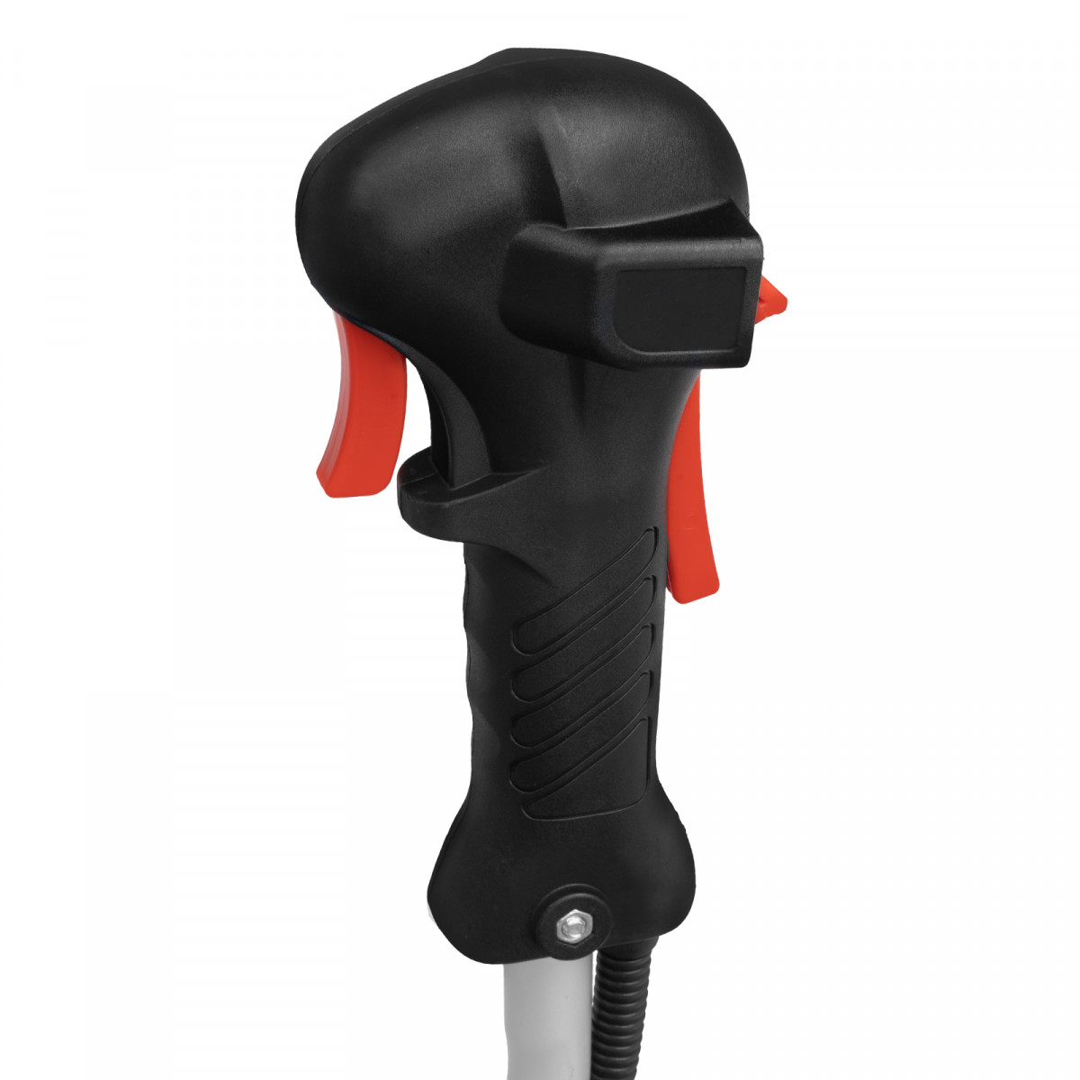 - Безопасность — блокиратор курка газа препятствует случайному запуску двигателя, прочный пластиковый кожух защищает пользователя от летящей травы, грязи и прочих твердых частиц.