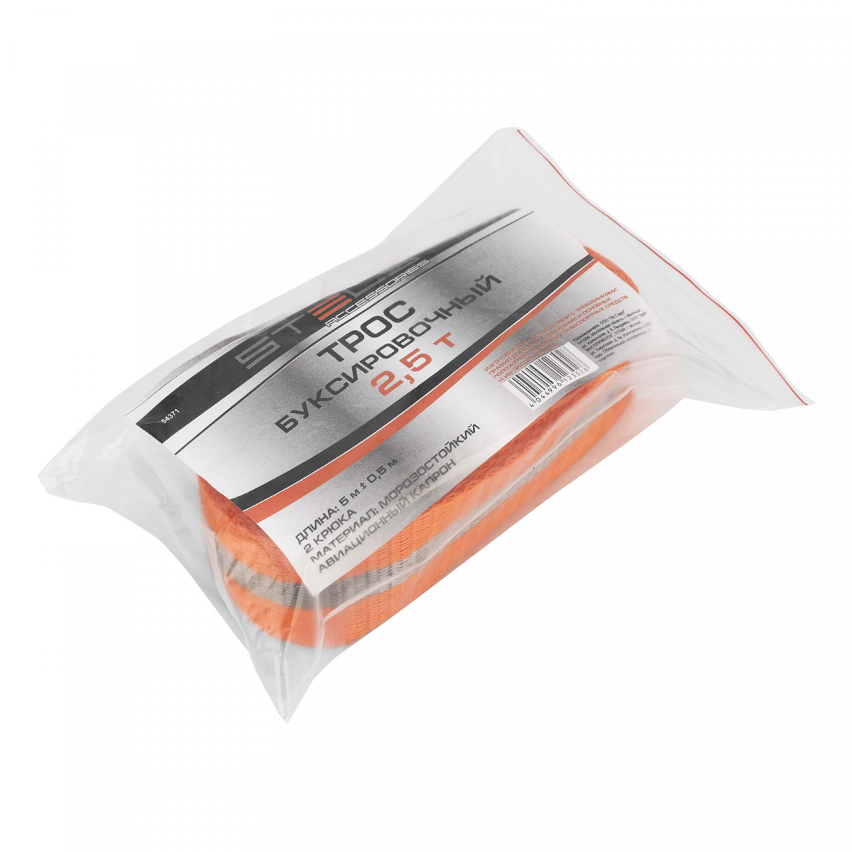 Трос буксировочный Stels 54371 с 2 крюками, в пакете, выдерживает нагрузки до 2,5 тонн. Будет полезен водителям при поломке легковых автомобилей, проблемах с двигателем, вытягивании транспортного средства из кювета, грязи и т.д.