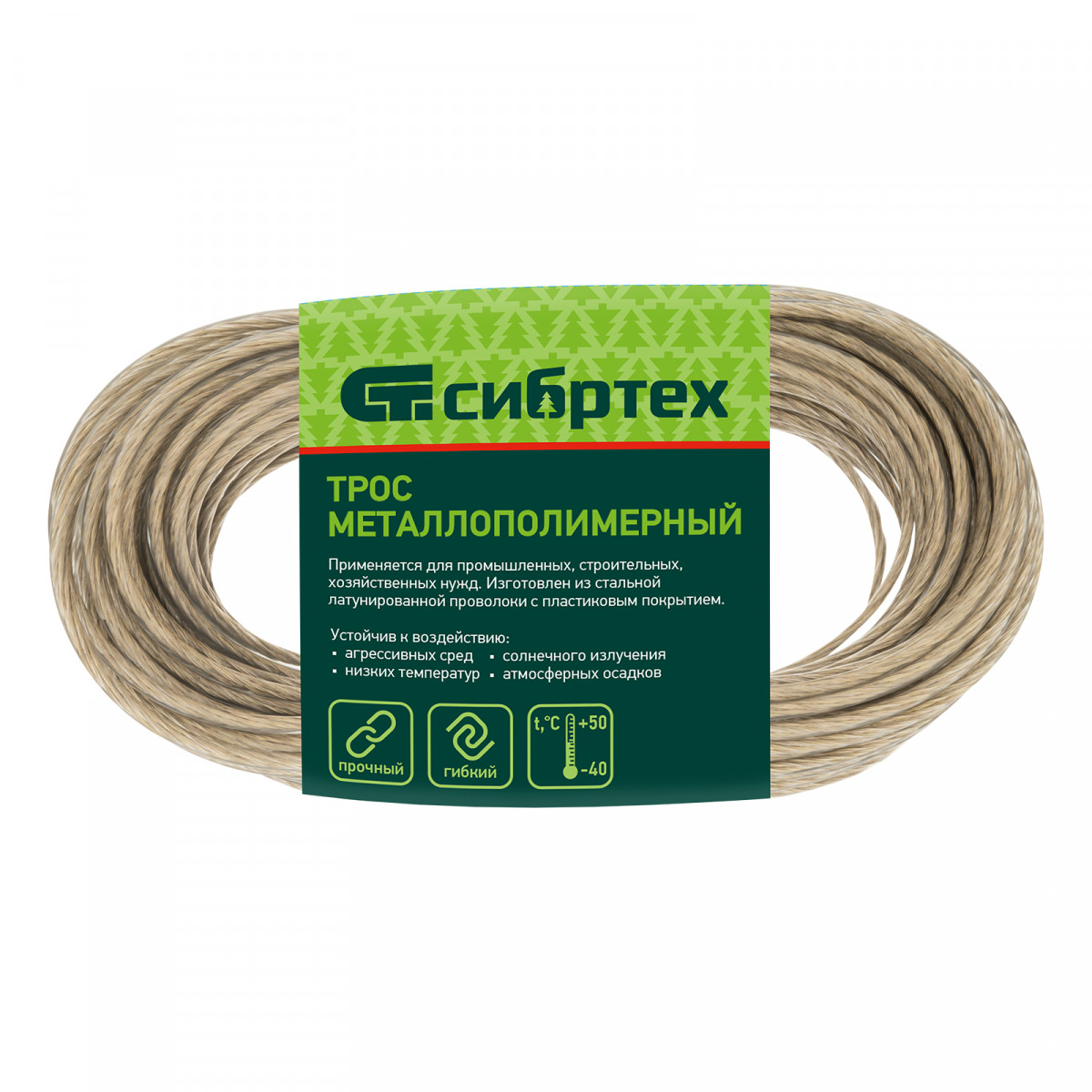 • Дополнительная защита от окисления — трос покрыт пластифицированным поливинилхлоридом.