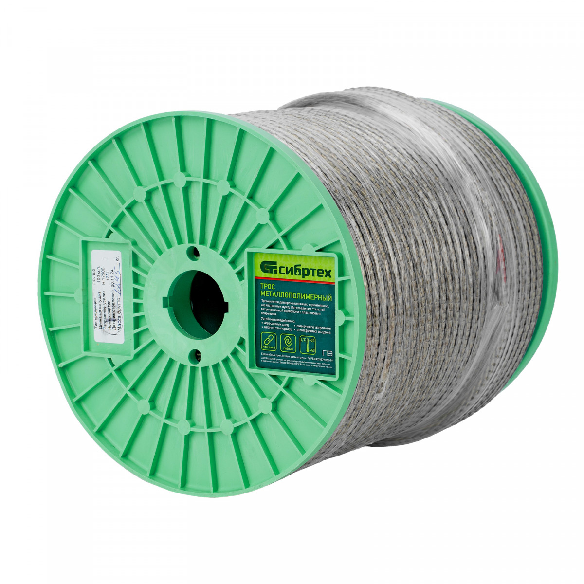 Металлополимерный прозрачный трос ПР-8.0 Сибртех 47641 толщиной 8 мм, 200 м. п. на катушке, используется для монтажа рекламных баннеров, установки ограждений, палаток, теплиц, погружения скважинных насосов и датчиков. Применяется в качестве садового троса-шнура для подвязки растений, а также может служить для развешивания белья. Жила шнура изготовлена из стальной проволоки, поэтому он выдерживает значительные нагрузки.