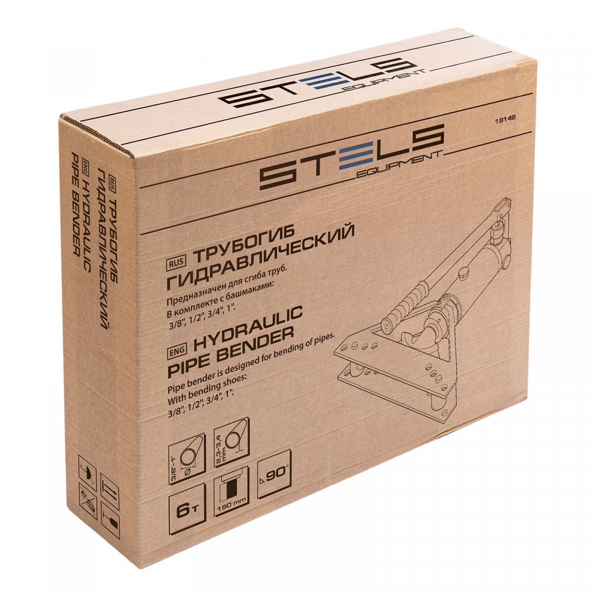 Трубогиб гидравлический горизонтальный, 6т, башмаки 3/8"–1", в металлическом кейсе Stels