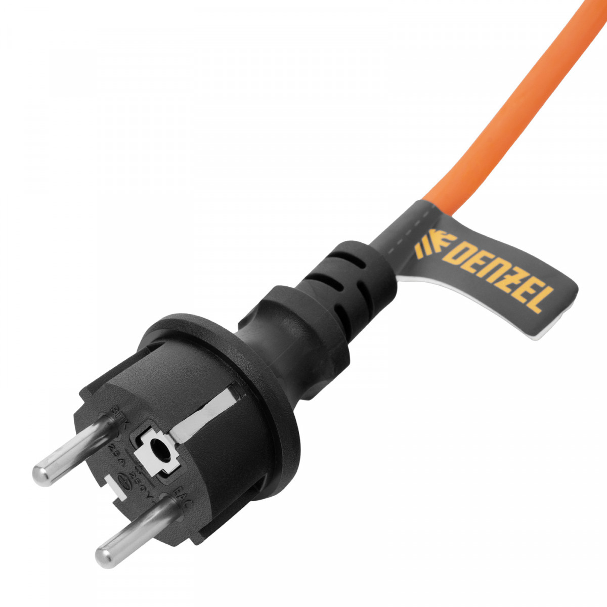 Силовой удлинитель-шнур Denzel Garden Series 37402 с кабелем ПВС сечением 2 x 1 мм и 1 розеткой без заземления, позволяет подключать приборы к электросети на расстоянии до 20 м от стационарного источника питания. Максимальная мощность потребителя составляет 3500 Вт при полностью размотанном кабеле и 1750 Вт — при смотанном. Удлинитель может использоваться при температуре от +5 до +35 °C. Пригодится дома, на даче, в гараже.