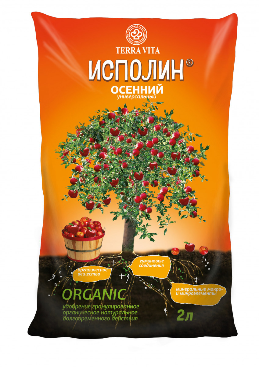Исполин Осенний – органо-минеральное удобрение, оформленное в виде гранул. Производимое из смеси биогумуса, торфа, макро- и микроудобрений. Содержит минимум азота, максимум фосфора и калия.Создает плодородный слой, улучшает структуру, восстанавливает естественный биоценоз почв. Существенно повышает урожайность и качество овощей, плодов и ягод. Способствует сезонному приросту корневой системы у многолетних культур, деревьев и кустарников. Помогает накопить питательные вещества, которые повысят зимостойкость. Комплекс микроэлементов повышает устойчивость к воздействию неблагоприятных факторов внешней среды.