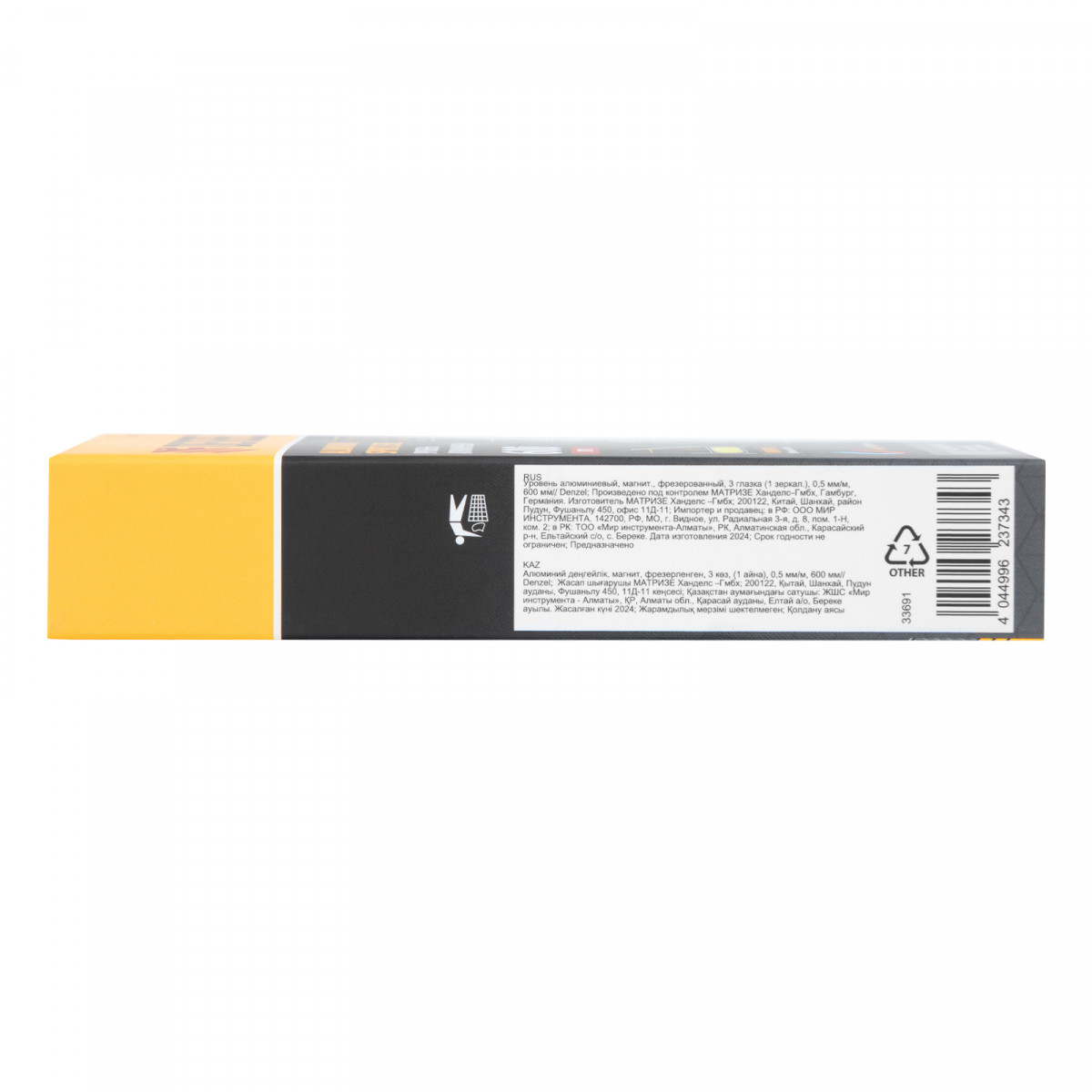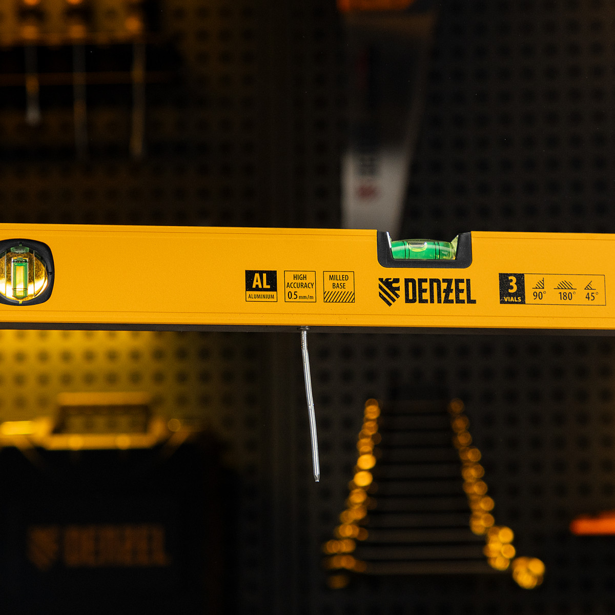 Уровень алюминиевый, магнит, фрезерованный, 3 глазка (1 зеркал.) 0,5 мм/м, 600 мм Denzel