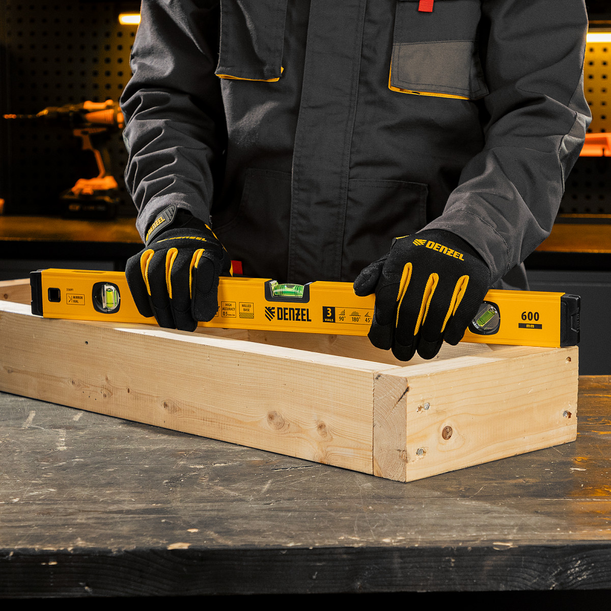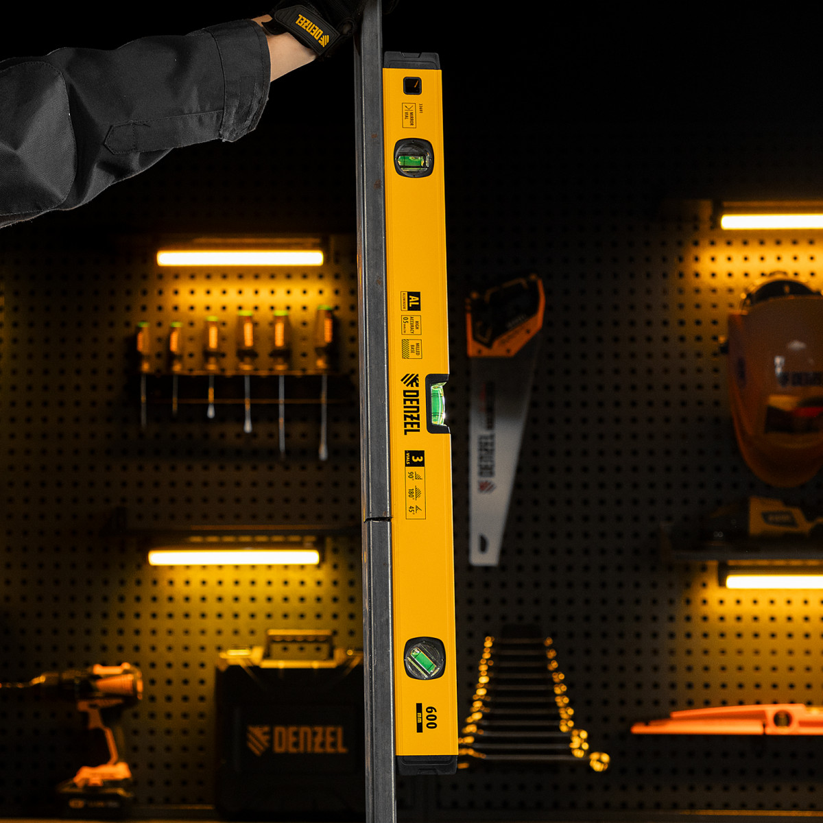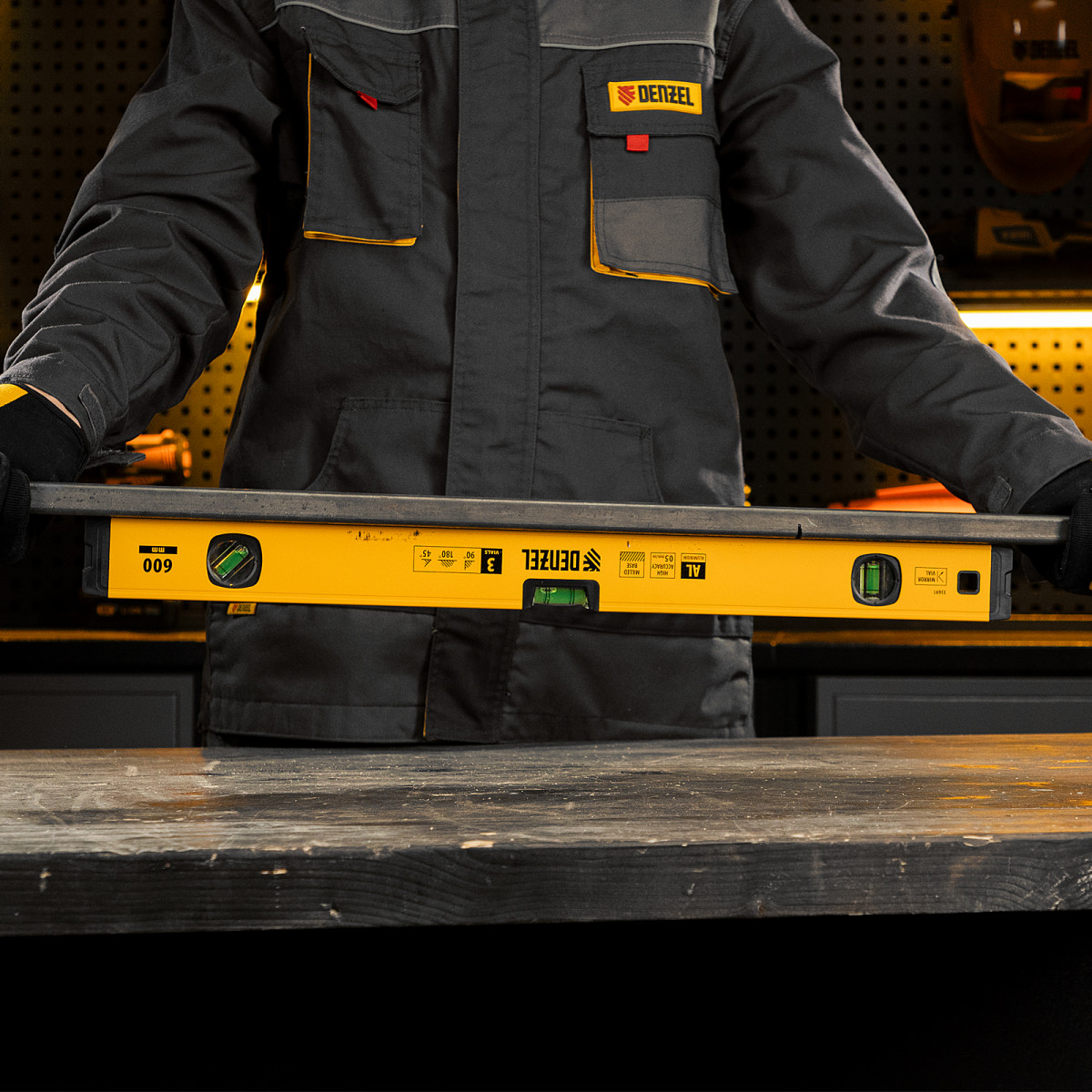 Алюминиевый фрезерованный уровень Denzel 33691 длиной 600 мм, с магнитом и 3 глазками, из которых 1 зеркальный, предназначен для контроля отклонений от горизонтальной, вертикальной и поверхности под углом 45° с точностью 0,5 мм/м. 3 пузырьковые камеры 90°, 180° и 45° позволяют быстро проверить правильность разметки. Инструмент незаменим при проведении строительных, ремонтных, сантехнических работ.