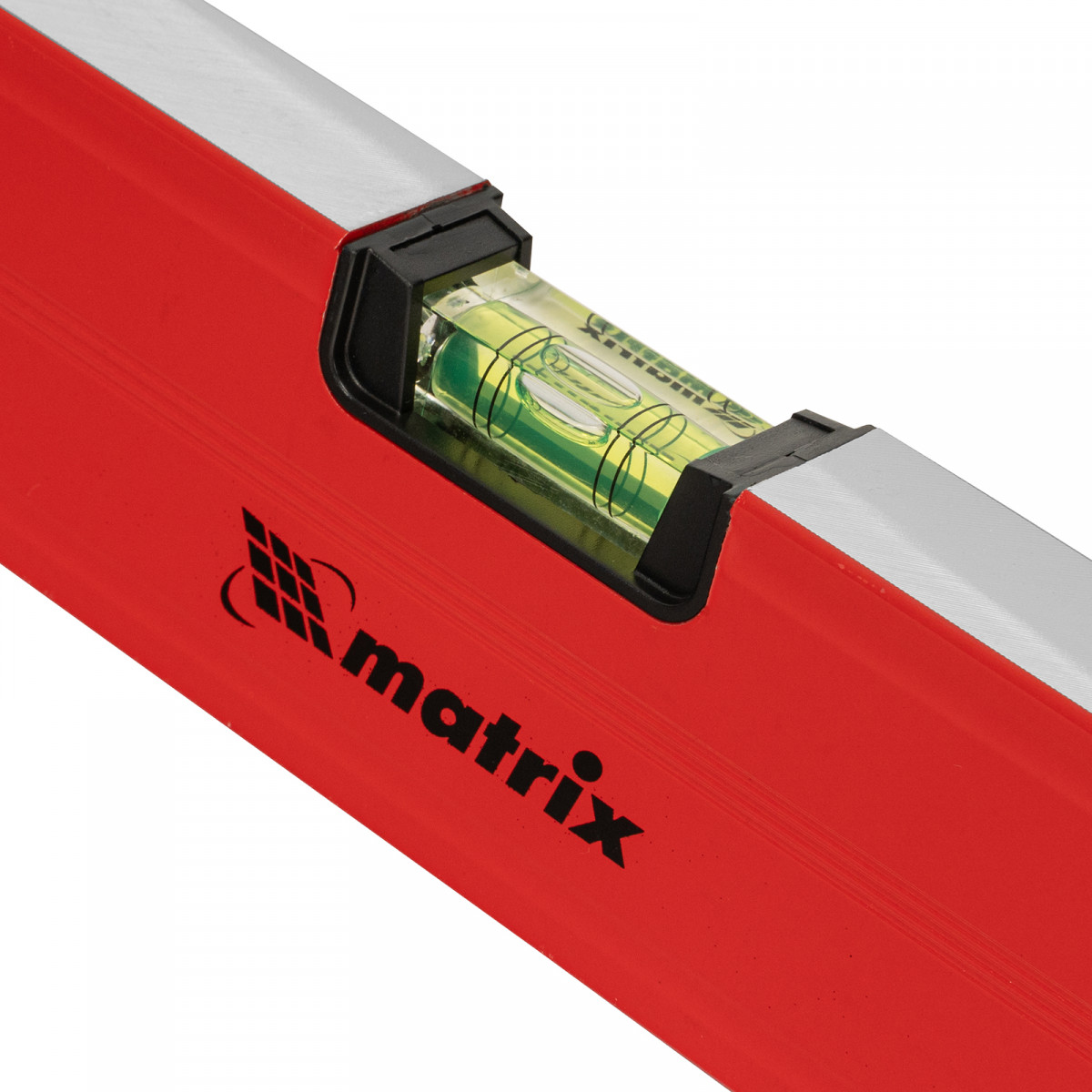 Уровень алюминиевый магнитный Matrix 34715 усиленной конструкции, длиной 1500 мм, с фрезерованной рабочей поверхностью, оснащен 3 глазками и одним зеркальным отражателем. Позволяет выявить отклонения от вертикали, горизонтали и угла 45°. Встроенный зеркальный глазок облегчает считывание показаний.