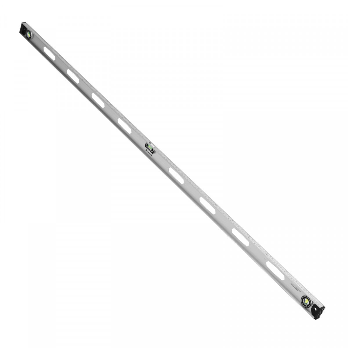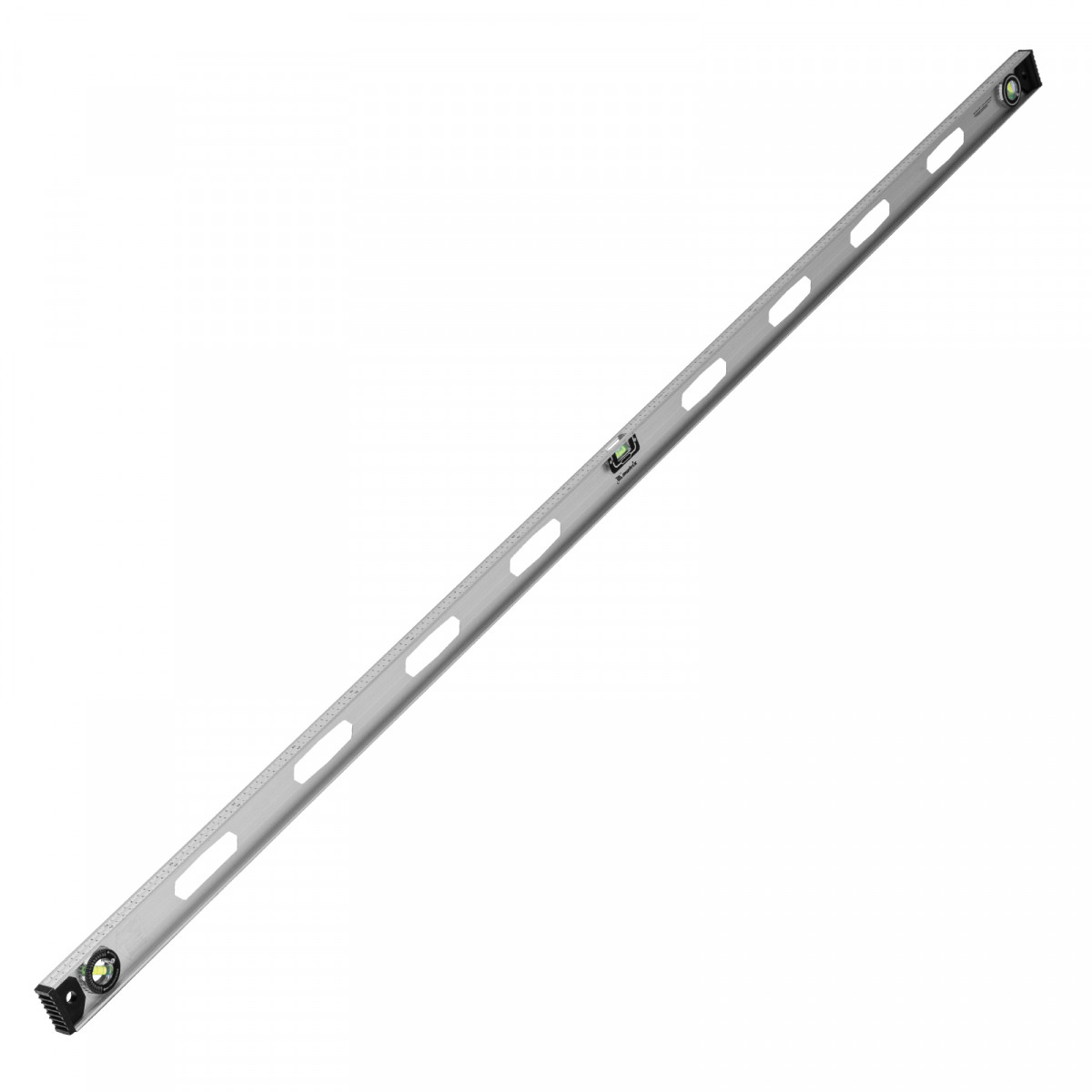 Алюминиевый уровень Matrix «Рельс» 34041 длиной 2000 мм имеет 3 глазка: 2 для проверки отклонений от заданной вертикали и горизонтали и 1 поворотный для проверки наклонных поверхностей.,Для определения отклонения вертикали 90 градусов необходимо использовать пузырьковую ампулу только в верхнем положении уровня. Только базовая поверхность является рабочей (противоположная ампуле 180 градусов).