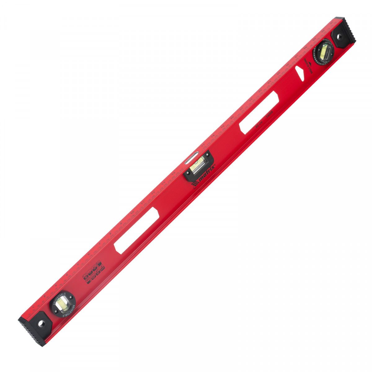 Уровень алюминиевый усиленный Matrix «Рельс» 34008 длиной 800 мм снабжен 3 глазками для проверки отклонений относительно горизонтальной и вертикальной плоскостей. Поворотный глазок уровня позволяет выстроить произвольный угол. Инструмент пригодится строителю, отделочнику, бетонщику и другим специалистам.
