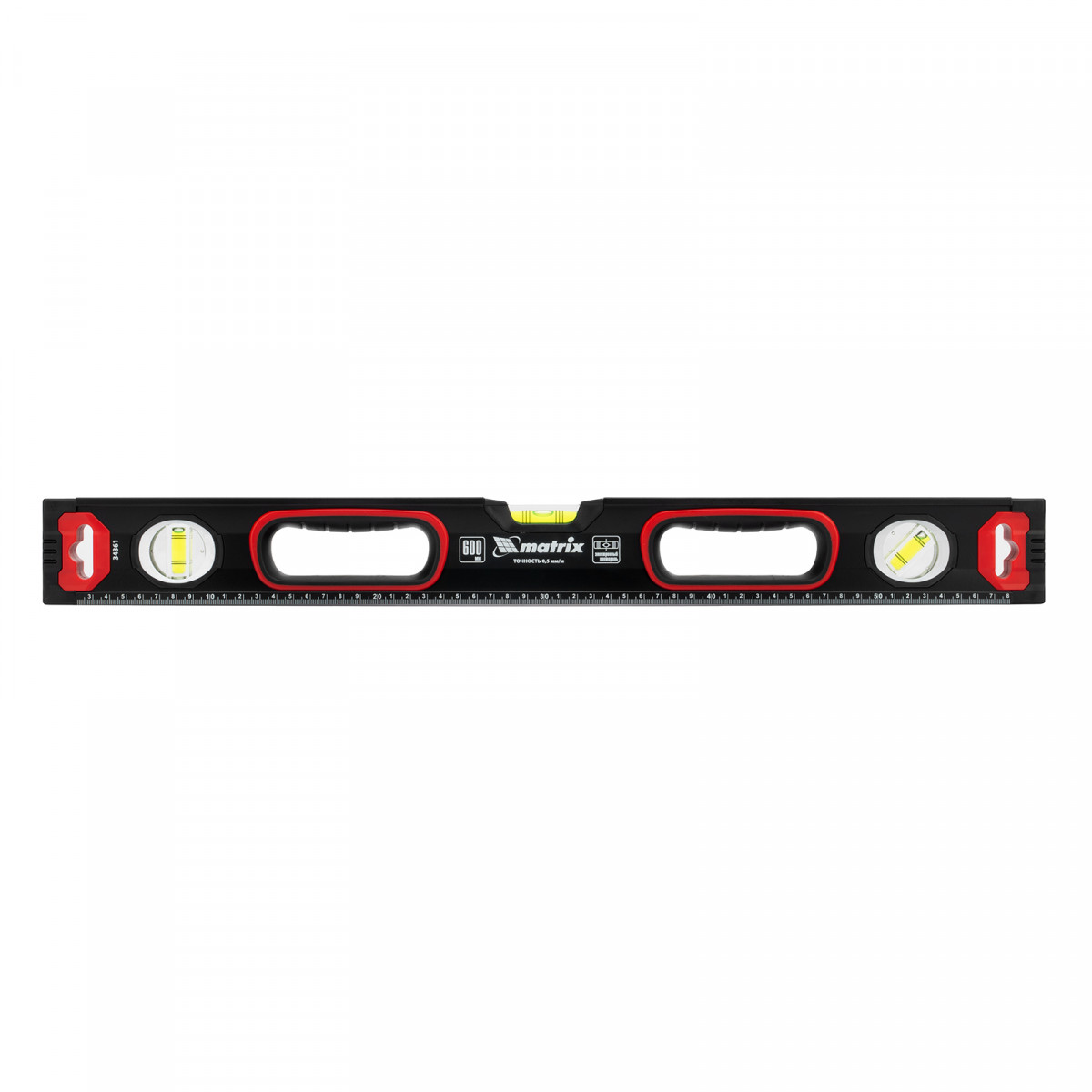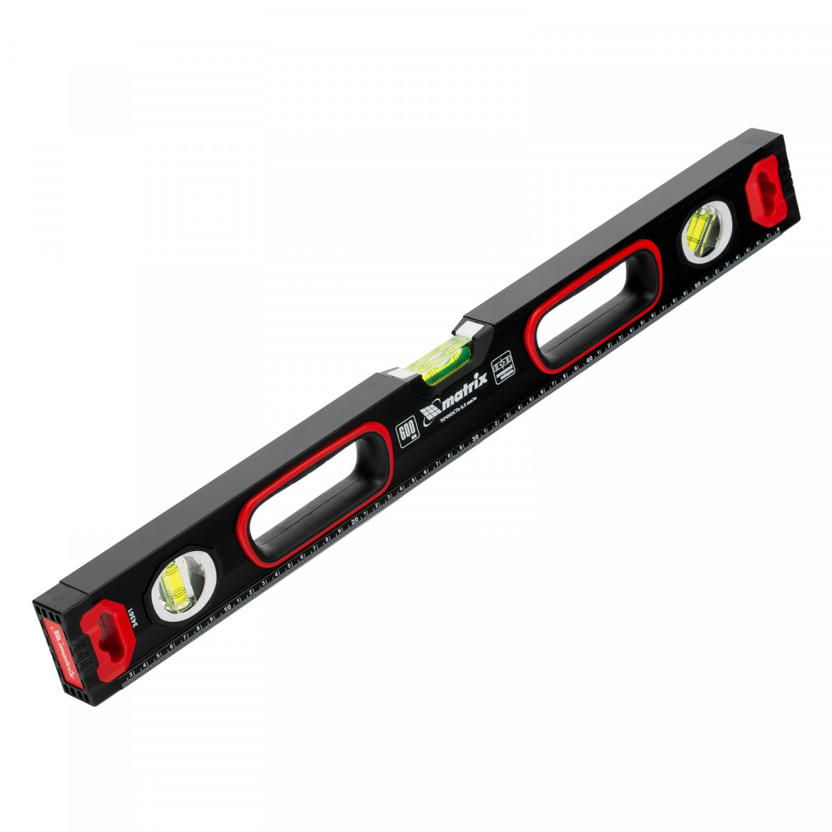 Уровень алюминиевый, усиленный, фрезерованный, 3 глазка, двухкомпонентные рукоятки, 600 мм Matrix