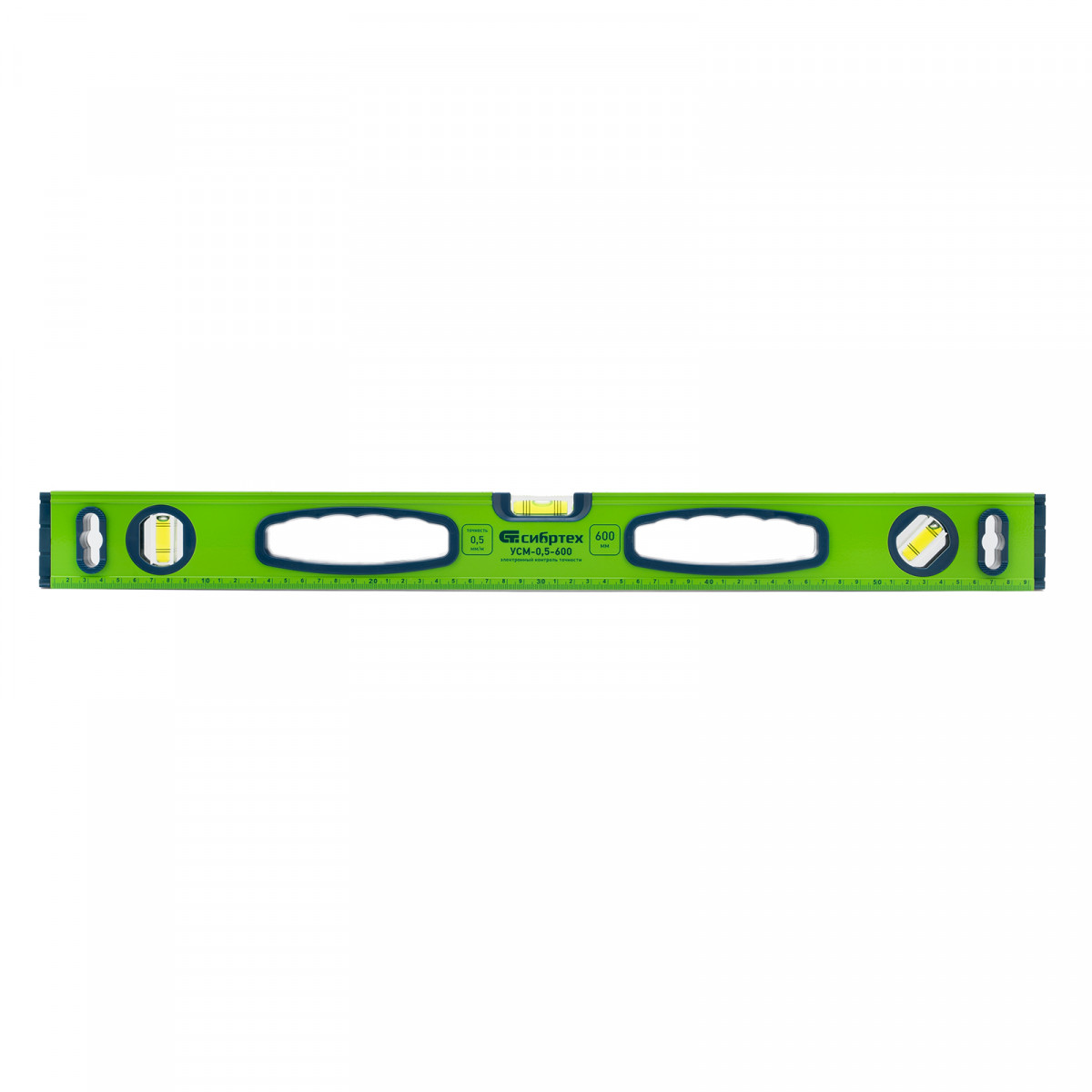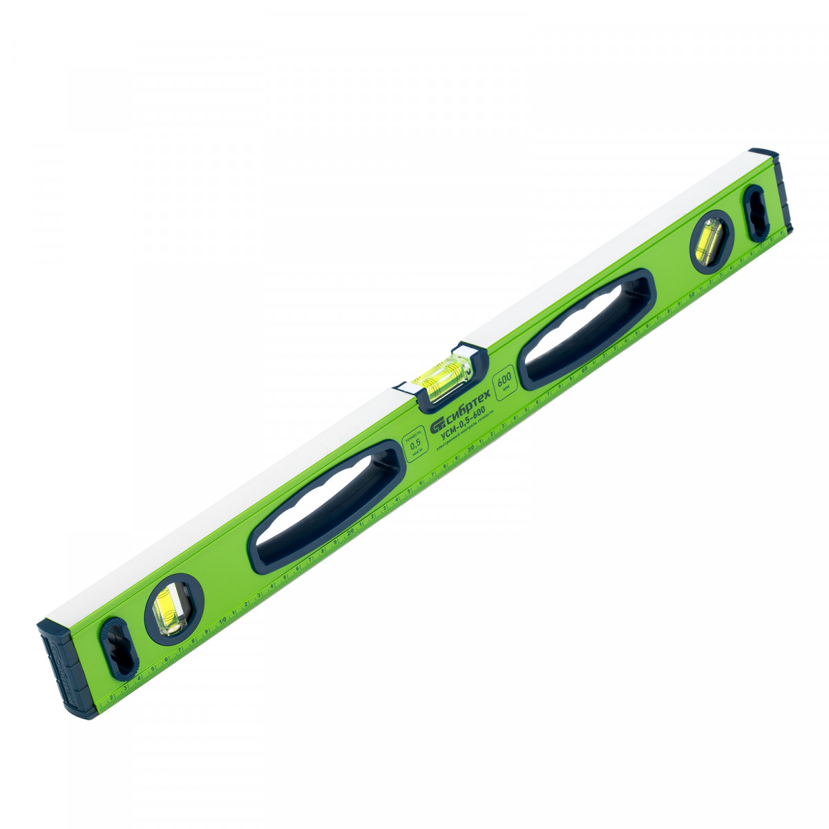 Уровень алюминиевый УСМ-0,5-600, фрезерованный, 3 глазка, магнитный, рукоятки, 600 мм Сибртех