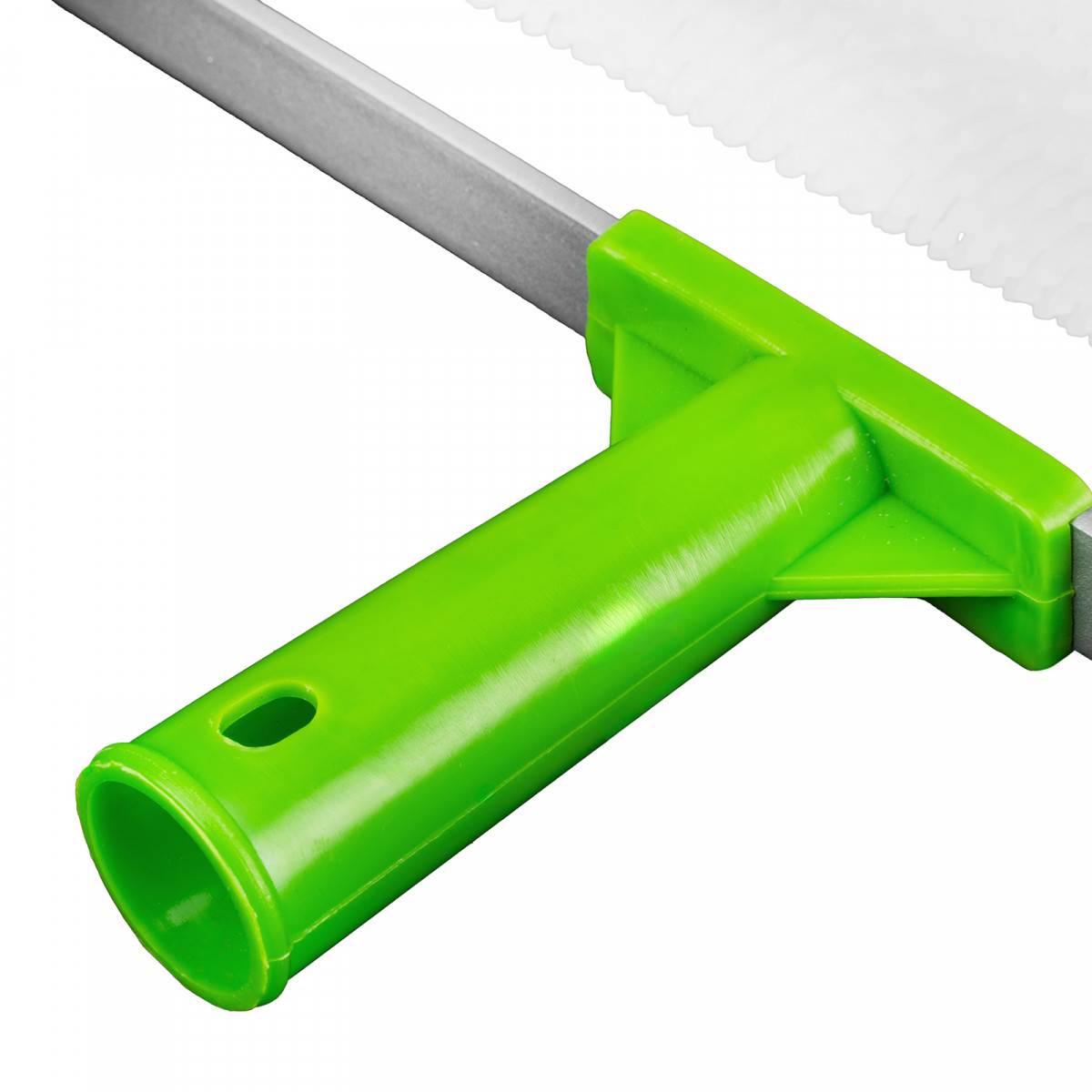 Игольчатый валик Сибртех 81104 длиной 600 мм используется для монтажа наливных полов. Позволяет удалять пузырьки воздуха из толщи еще жидкого покрытия путем его интенсивного прокатывания по распределенному на поверхности основы раствору. Валик длиной 600 мм можно использовать на поверхности большой площади. Длина иголок 13 мм оптимальна для покрытий небольшой толщины.
