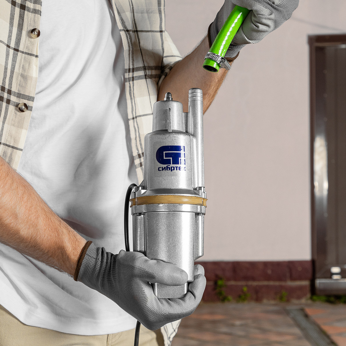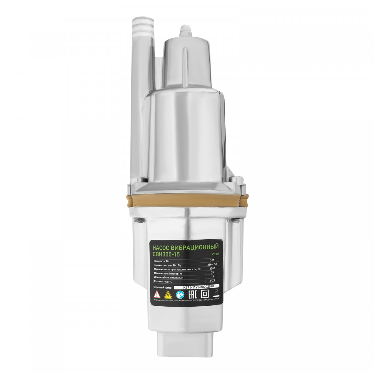Вибрационный насос СВН300-15, верхний забор, 300 Вт, напор 75 м, 1200 л/ч, кабель 15 м Сибртех