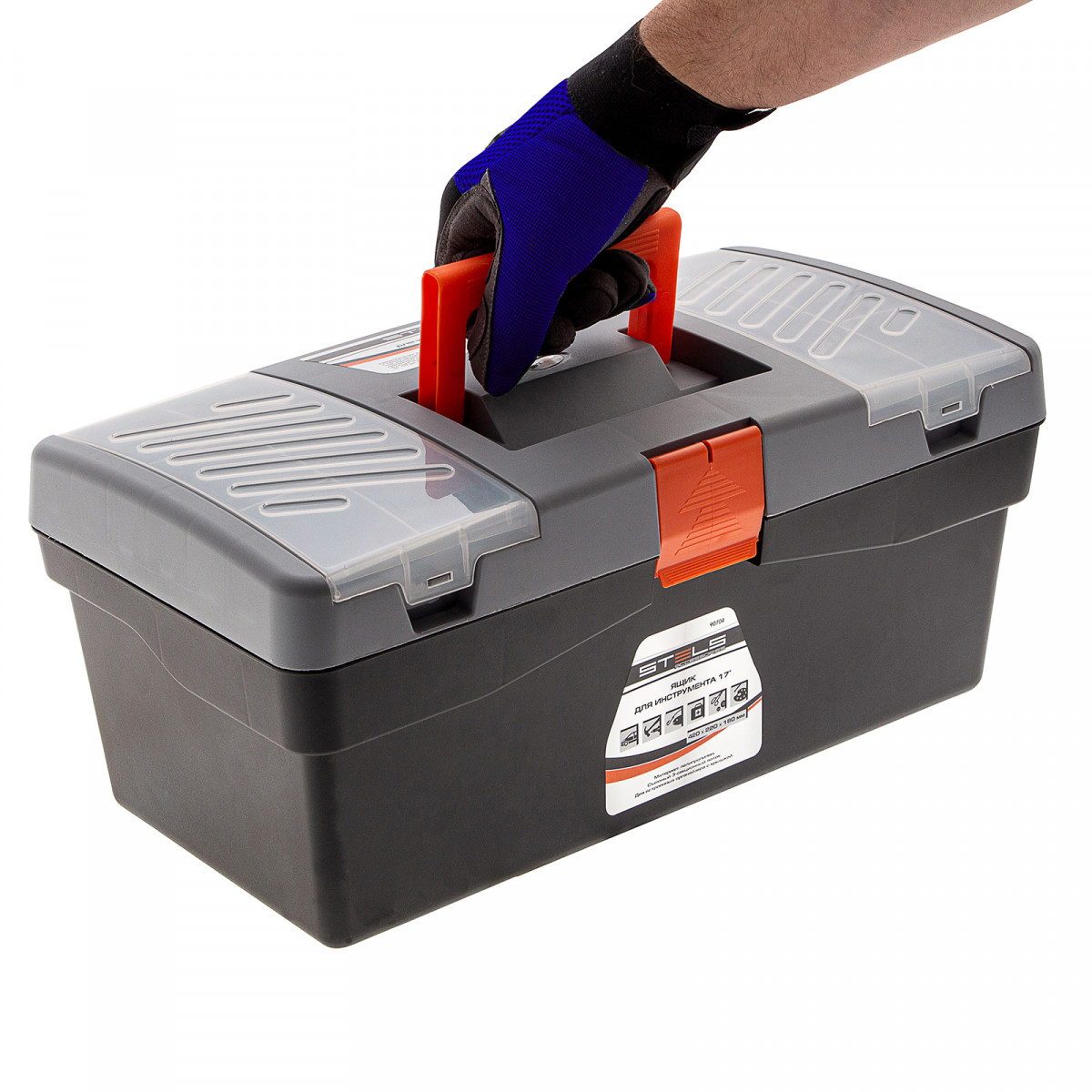 Ящик для инструмента Stels 90704 из пластика, длиной 17", габаритами 420 х 220 х 180 мм, предназначен для переноски и хранения инструментов, хозяйственных мелочей, рыболовных снастей. Крышка надежно закрывается, поэтому содержимое не рассыплется. Встроенные в крышку отделения обеспечивают быстрый доступ к крепежам и другим необходимым предметам. Большой ящик для хранения инструментов будет полезен дома, на даче, в гараже и на рыбалке.