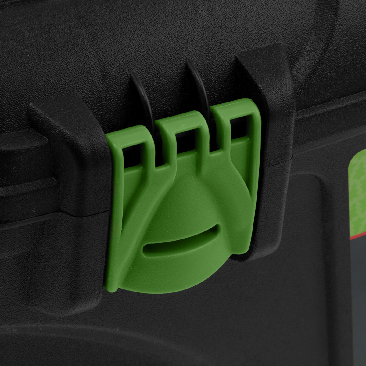 • Трехрядные петли усиливают конструкцию замка и верхней крышки, поэтому в ящик можно положить много инструментов.
