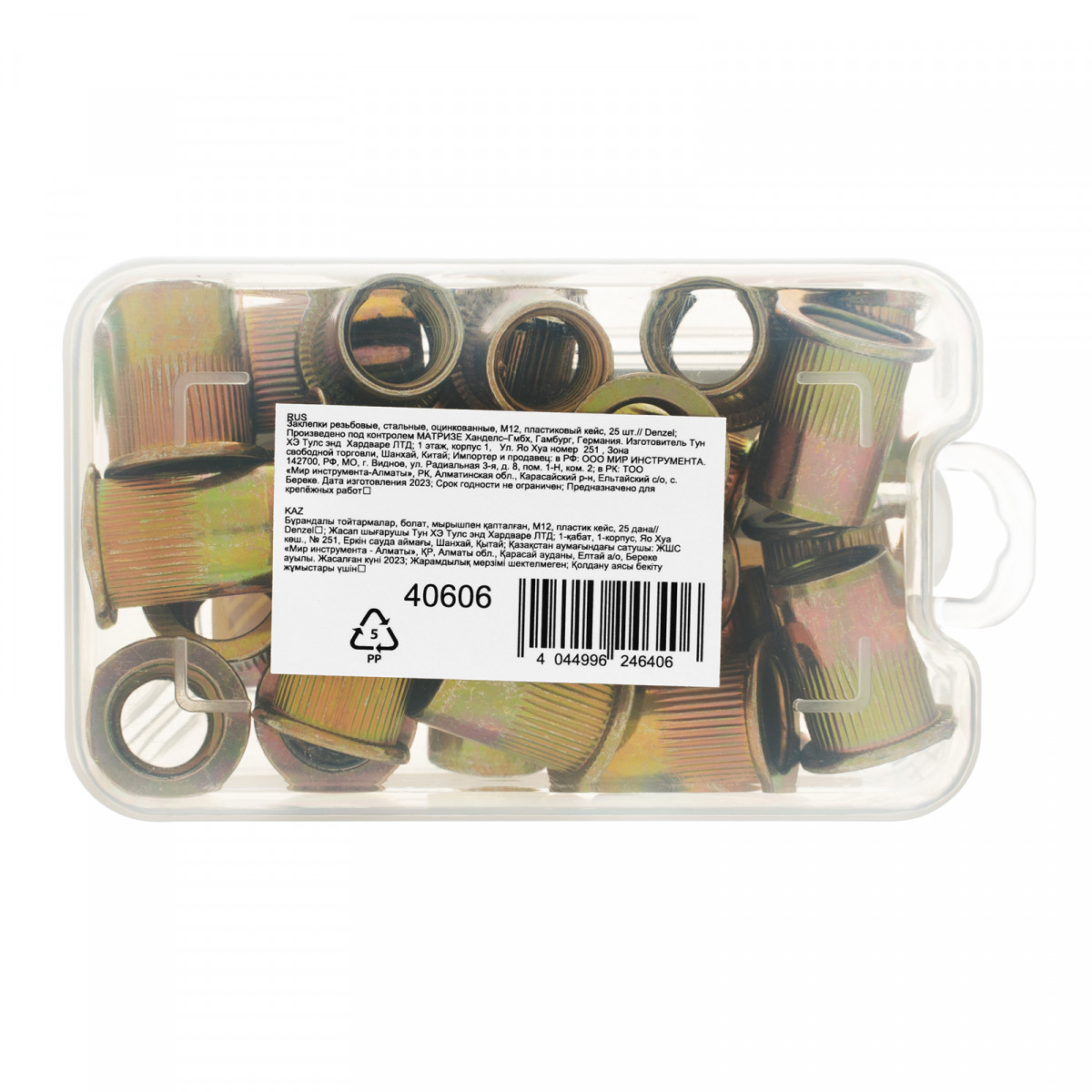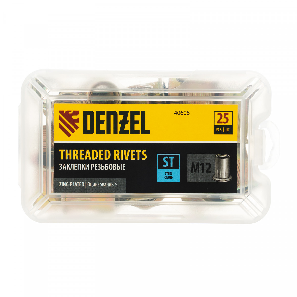 Заклепки резьбовые, стальные, оцинкованные, М12, пластиковый кейс, 25 шт. Denzel