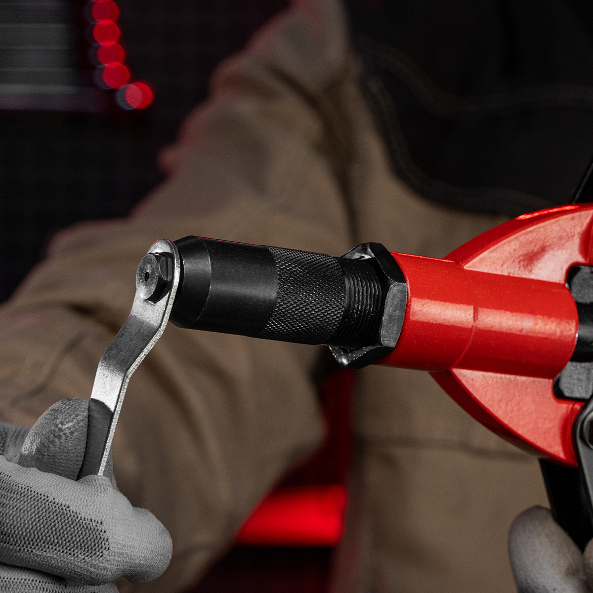 • Надежная фиксация крепежа — трехлепестковый зажимной механизм крепко удерживает вытяжной стержень заклепки