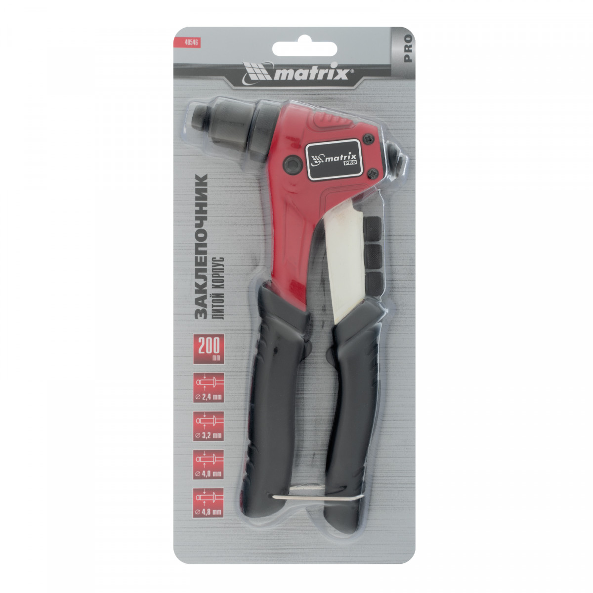Заклепочник литой, 200 мм, заклепки 2.4-3.2-4.0-4.8 мм, Pro Matrix