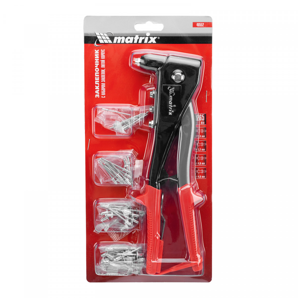 Заклепочник литой, 260 мм, с набором заклепок, заклепки 2.4-3.2-4.0-4.8 мм Matrix