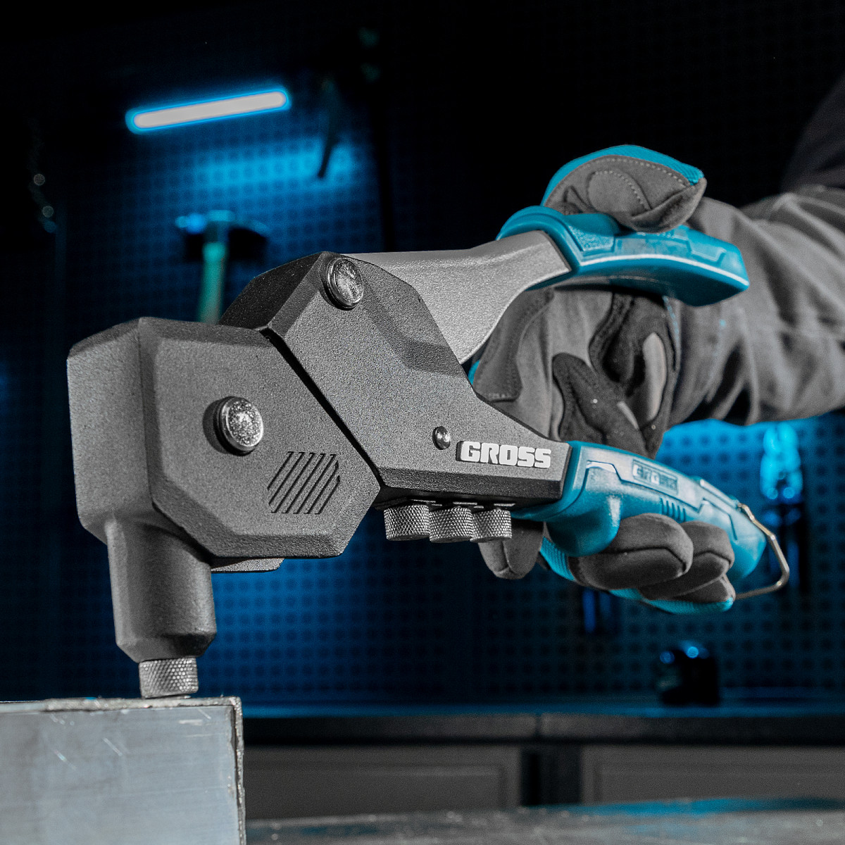 • Продуманная конструкция — сменные насадки устанавливаются в корпус заклепочника, поэтому они не потеряются.