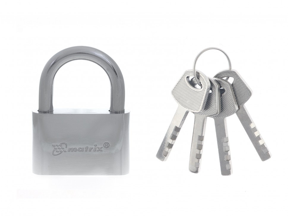Замок навесной, хромированное покрытие 70 мм Matrix