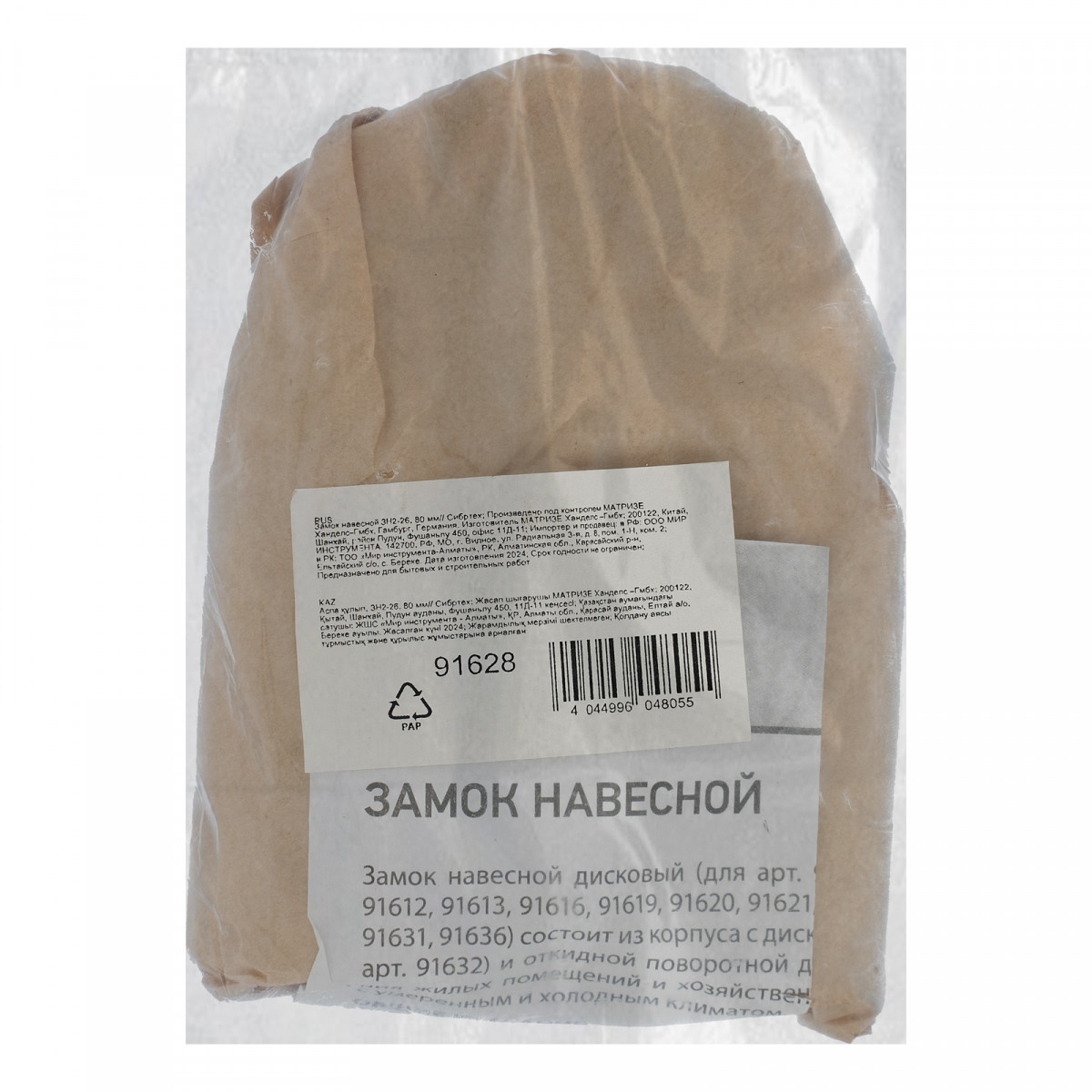 Навесной замок Сибртех ЗН2-26 91628 шириной 80 мм — запорное устройство для установки на дверные проушины. Защищает помещение от нежелательного проникновения. Замок можно повесить на дверь бытовки, склада, контейнера или гаража.