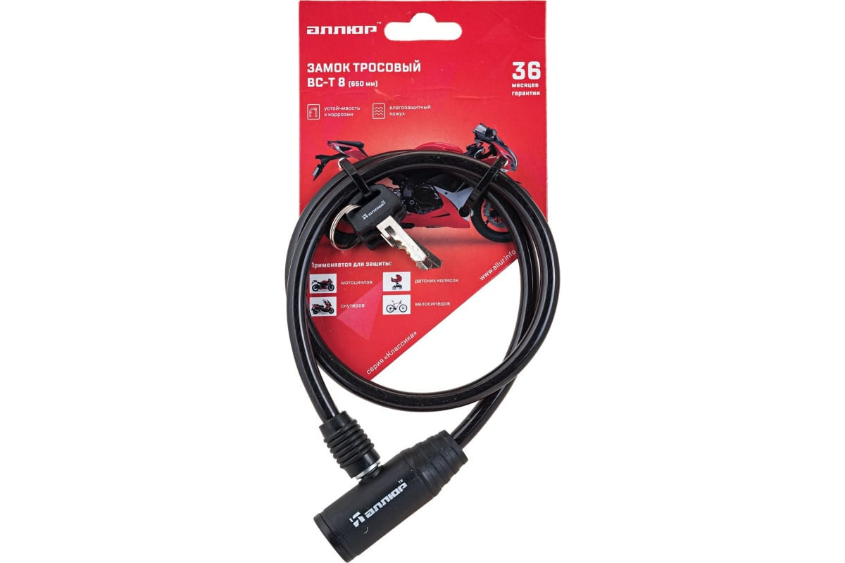 Замок велосипедный тросовый ВС-Т 8 (800 мм) АЛЛЮР